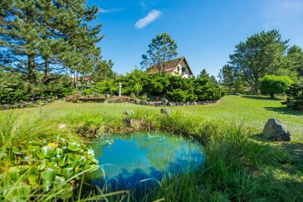 Całość otacza imponujący areał: 3,4 ha ziemi, obejmujący własny, zielony las i prowadzący aż do samej tafli jeziora. Bezpośredni dostęp do wody daje nieograniczone możliwości poranny spacer wśród drzew, popołudniowe kąpiele czy wieczorne obserwowanie zachodu słońca nad taflą jeziora. Każdy zakątek tej posiadłości został zadbany z sercem, tworząc atmosferę harmonii i wyjątkowości.