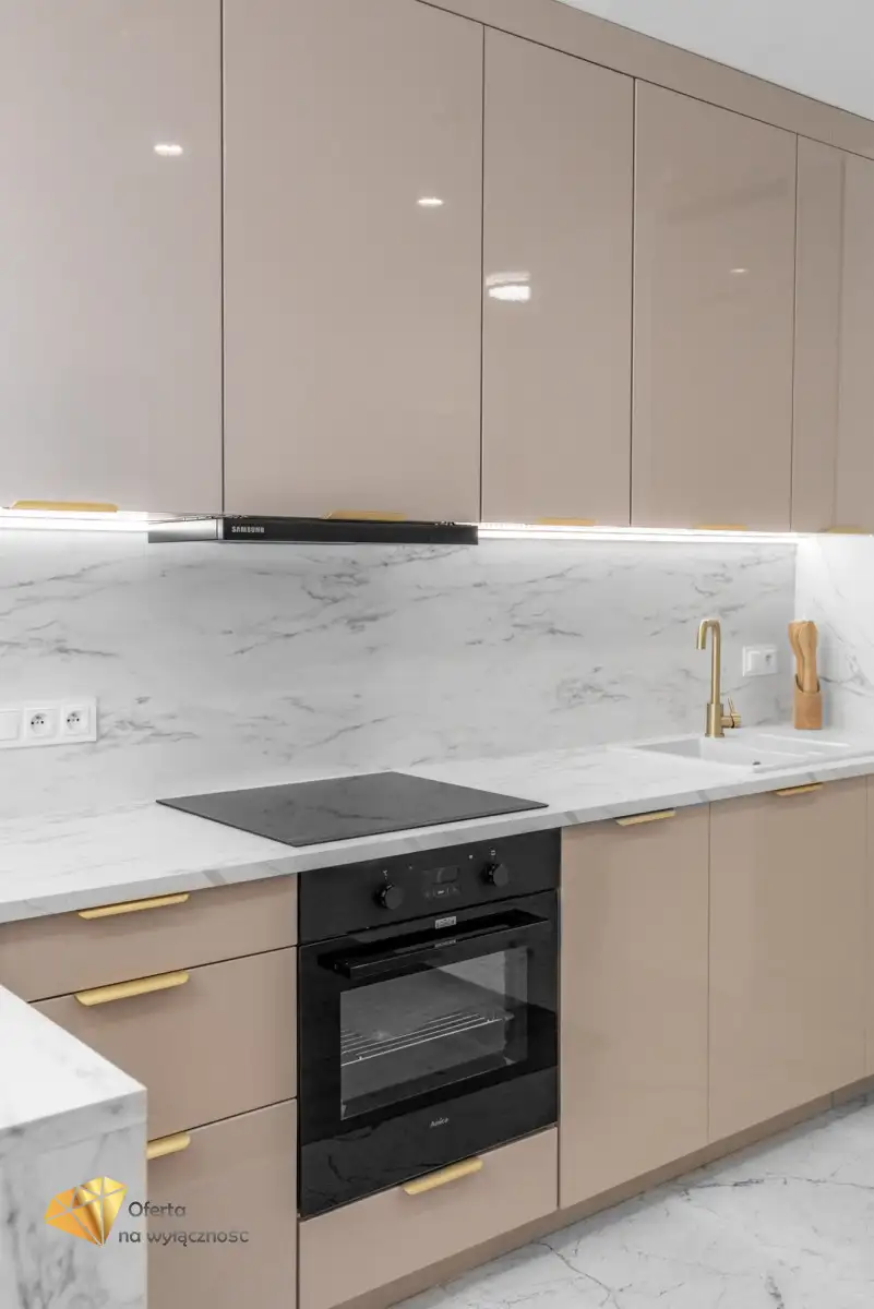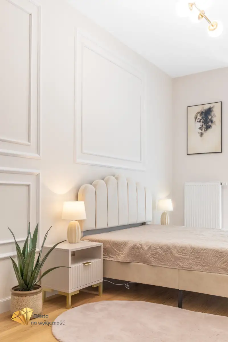 - Wyposażenie: Lodówka, pralka, indukcja, zmywarka, piekarnik, łózko, szafa.