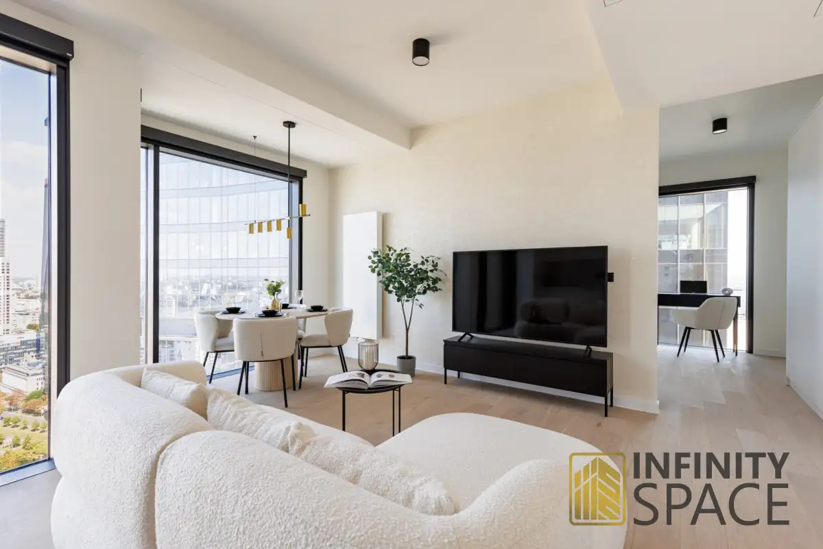 [Email protected]----------------- ENGLISH -----------------NEW! | TOWAROWA TOWERS | 2 ROOMS | UNDERGROUND GARAGE | HIGH STANDARD | AIR CONDITIONINGAPARTMENTThis modern, comfortable, and very elegant 47 sq m apartment is located on the 28th floor of the prestigious 29-story Towarowa Towers development. Its northeastern exposure and large, bright windows guarantee plenty of natural light. The apartment was designed by an interior designer and finished to a high standard, with custom-made joinery made of the highest quality materials. The apartment is very quiet. The apartment is equipped with high-end new appliances. It features an extremely functional layout, air conditioning, and a large TV with SmartTV functionality. No one has lived in the apartment yet.