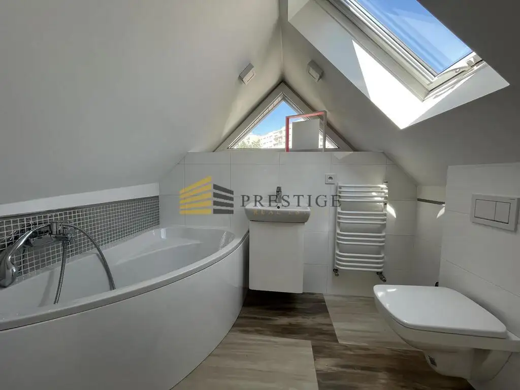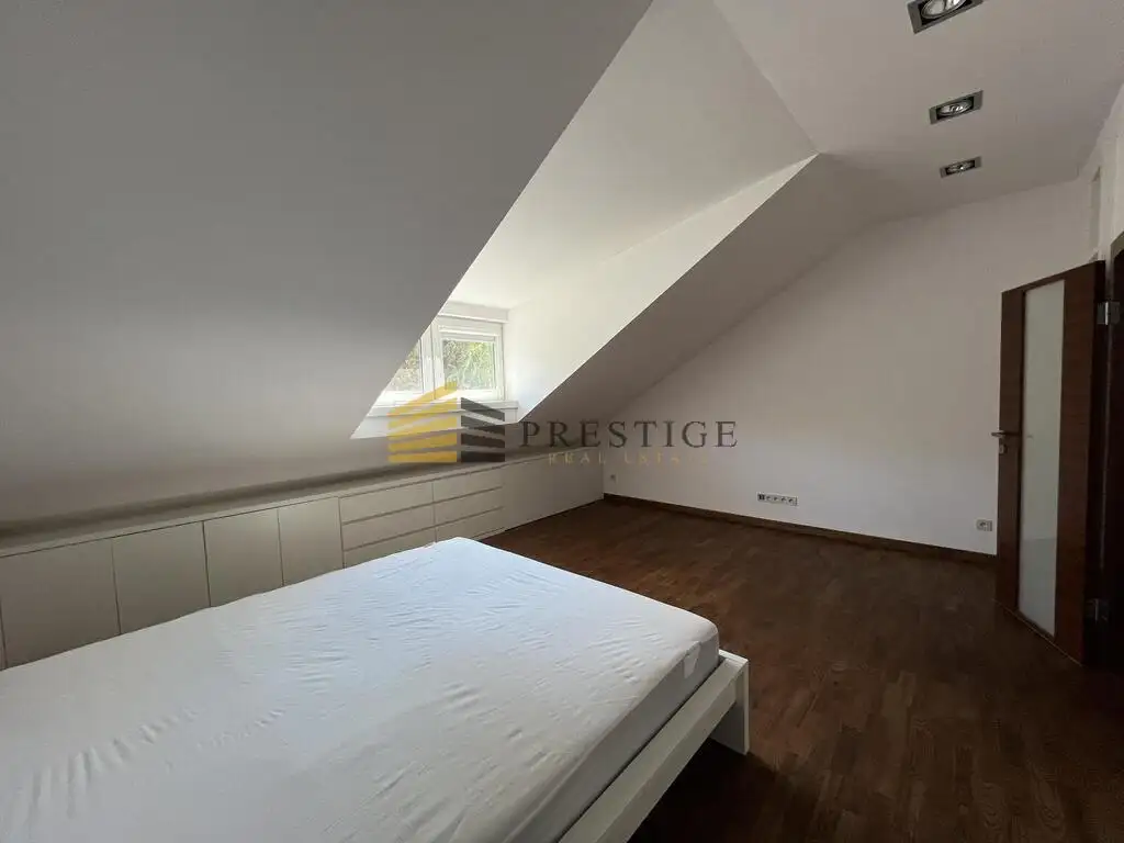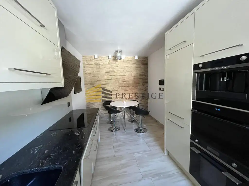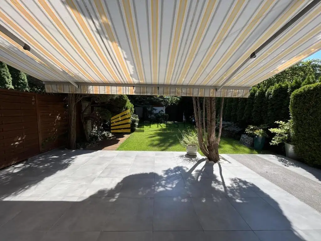 On 4 floors with a total area of 220 m², there are 7 rooms, 4 bathrooms, a laundry room and a pantry. The property also includes an intimate garden with an automatic awning. In the house, we will also find a videophone alarm and other amenities that allow for comfortable and convenient functioning of the residents