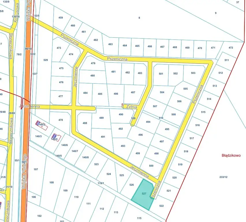 Przedmiotem przetargu jest sprzedaż prawa własności niezabudowanej nieruchomości położonej przy ul. Jęczmiennej w Pucku, składającej się z działki oznaczonej w ewidencji gruntów nr 527 o powierzchni 1148 m² (obr.5), użytek: RIIIa.