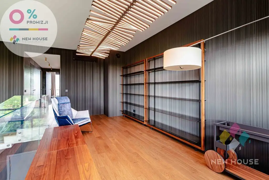 Na I kondygnacji znajdziemy salon z aneksem kuchennym i częścią jadalnianą, z bezpośrednim wyjściem na taras oraz WC. Na II kondygnacji usytuowana jest sypialnia z garderobą, z bezpośrednim wyjściem na balkon, gabinet wraz ze studiem nagrań, pralnia, łazienka z prysznicem, otwarty pokój.