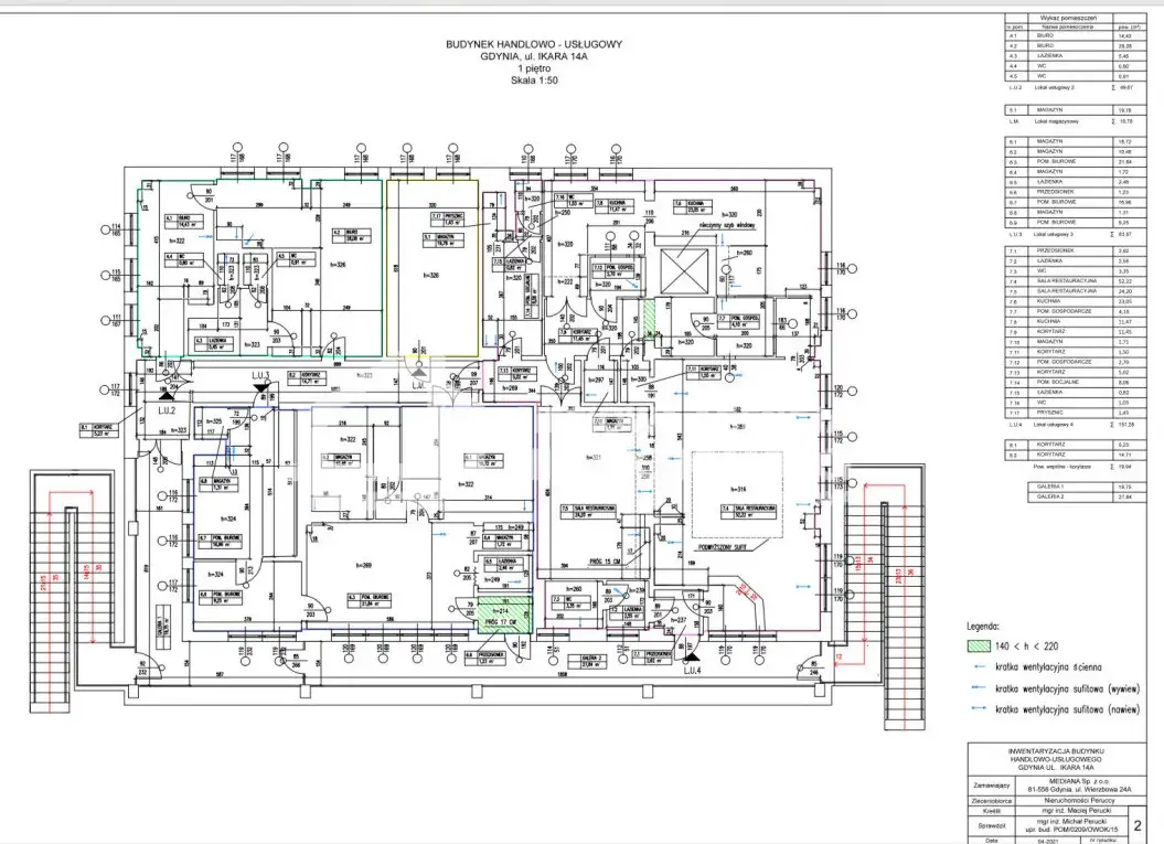 W skład lokalu wchodzi pomieszczenie główne, pomieszczenie socjalne, pomieszczenia biurowe, magazyn i toaleta.