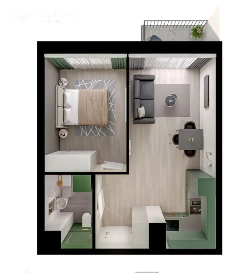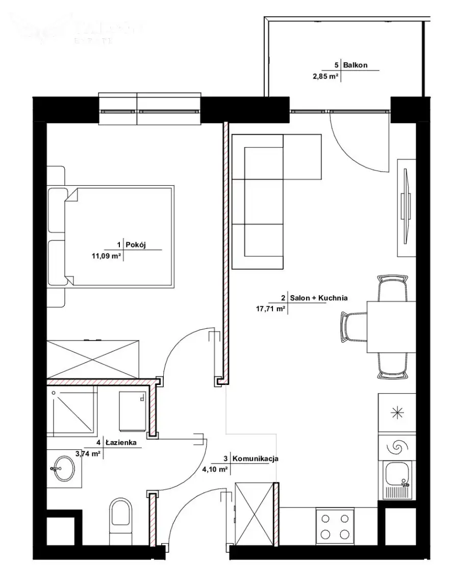 - Salon + Kuchnia 17,71 m²