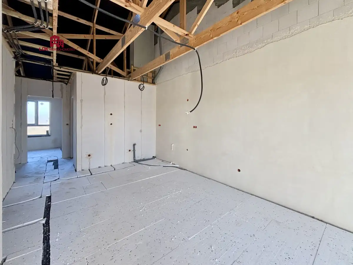 Ściany z silki o grubości 18-24 cm, ocieplenie 20 cm styropianu oraz solidne ławy fundamentowe gwarantują trwałość, energooszczędność i komfort akustyczny. Dwuspadowy dach to estetyczne i praktyczne rozwiązanie, które podkreśla elegancki charakter inwestycji.
