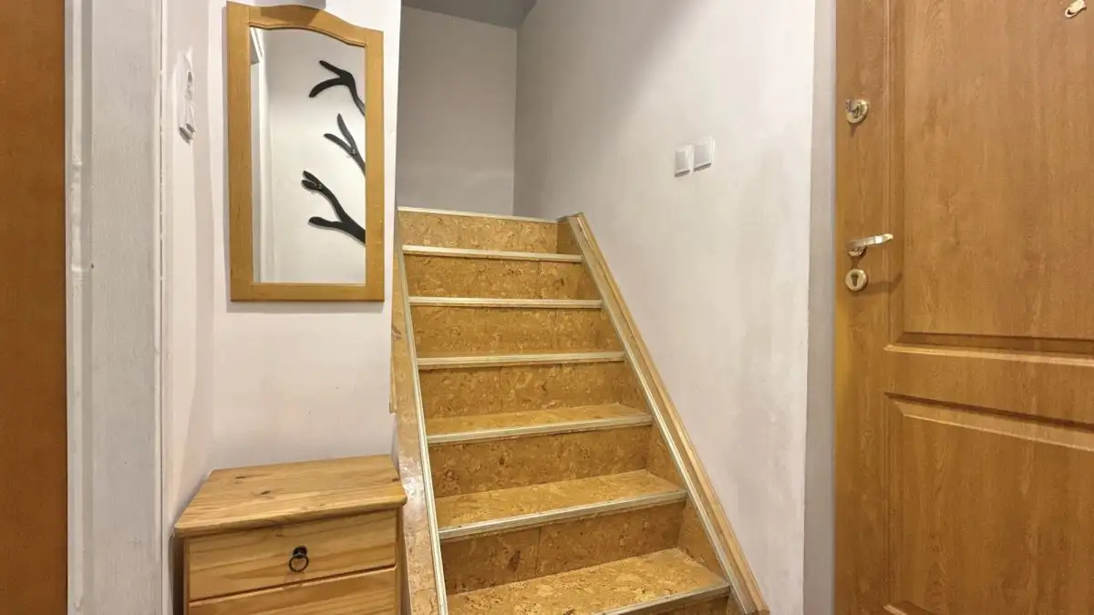 - Parter : dwa ustawne pokoje, kuchnia, łazienka oraz spiżarka