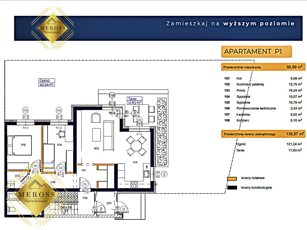 POWIERZCHNIA MIESZKANIA 68,99 m²
