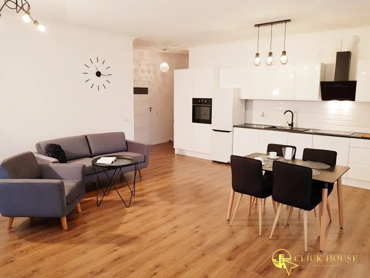 - przestronny pokój dzienny z aneksem kuchennym oraz wyjściem na balkon,