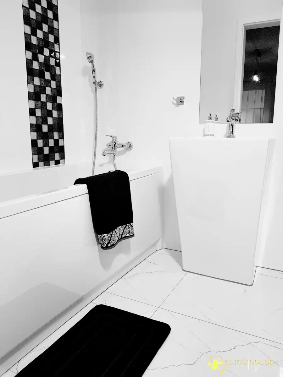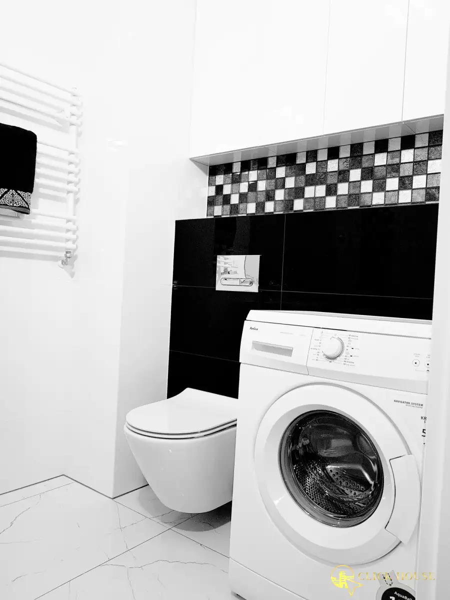 - łazienka z WC, wyposażona w wannę z funkcją prysznica oraz pralkę,