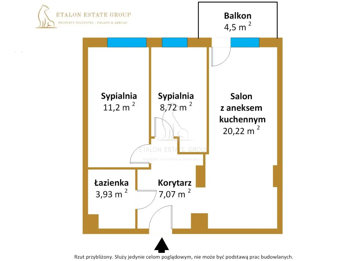 Pokoje: 3 (salon z aneksem + 2 pokoje)