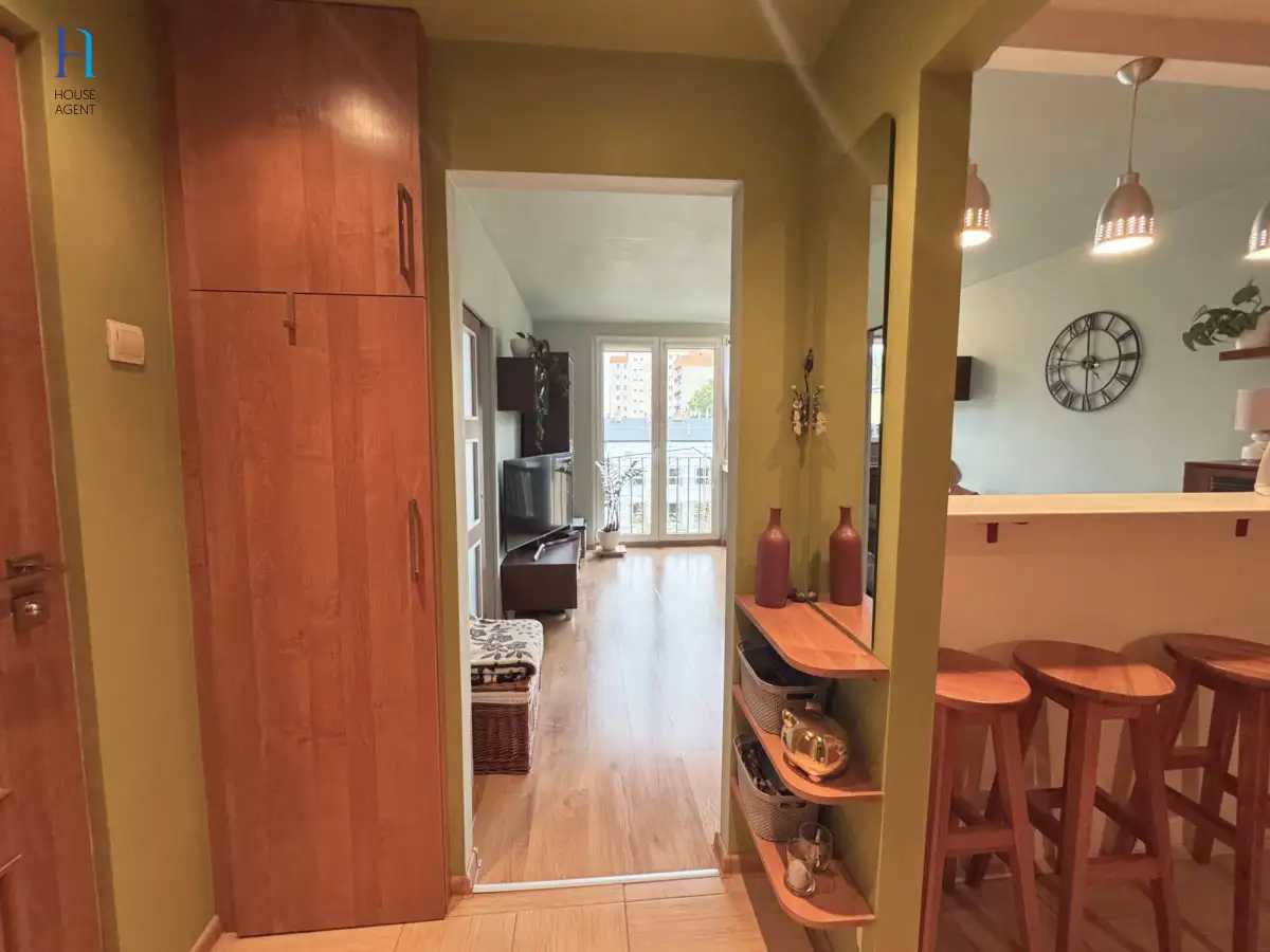 - Kameralny budynek:*Mieszkanie znajduje się na 4. piętrze niskiego, 4-piętrowego bloku z cegły, co zapewnia ciszę i spokój.