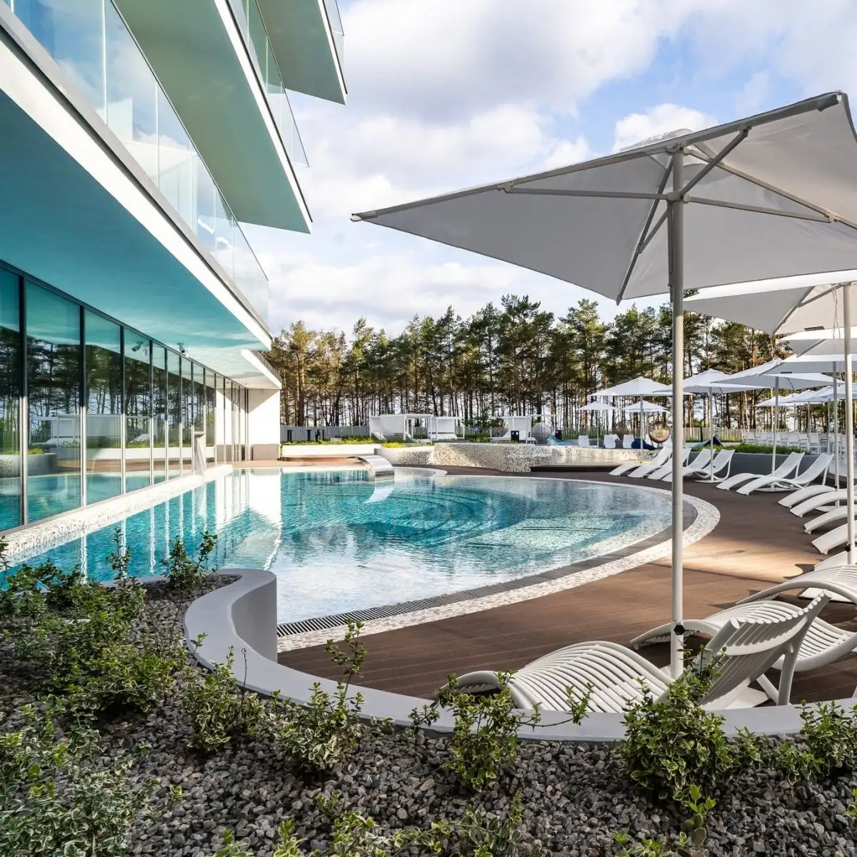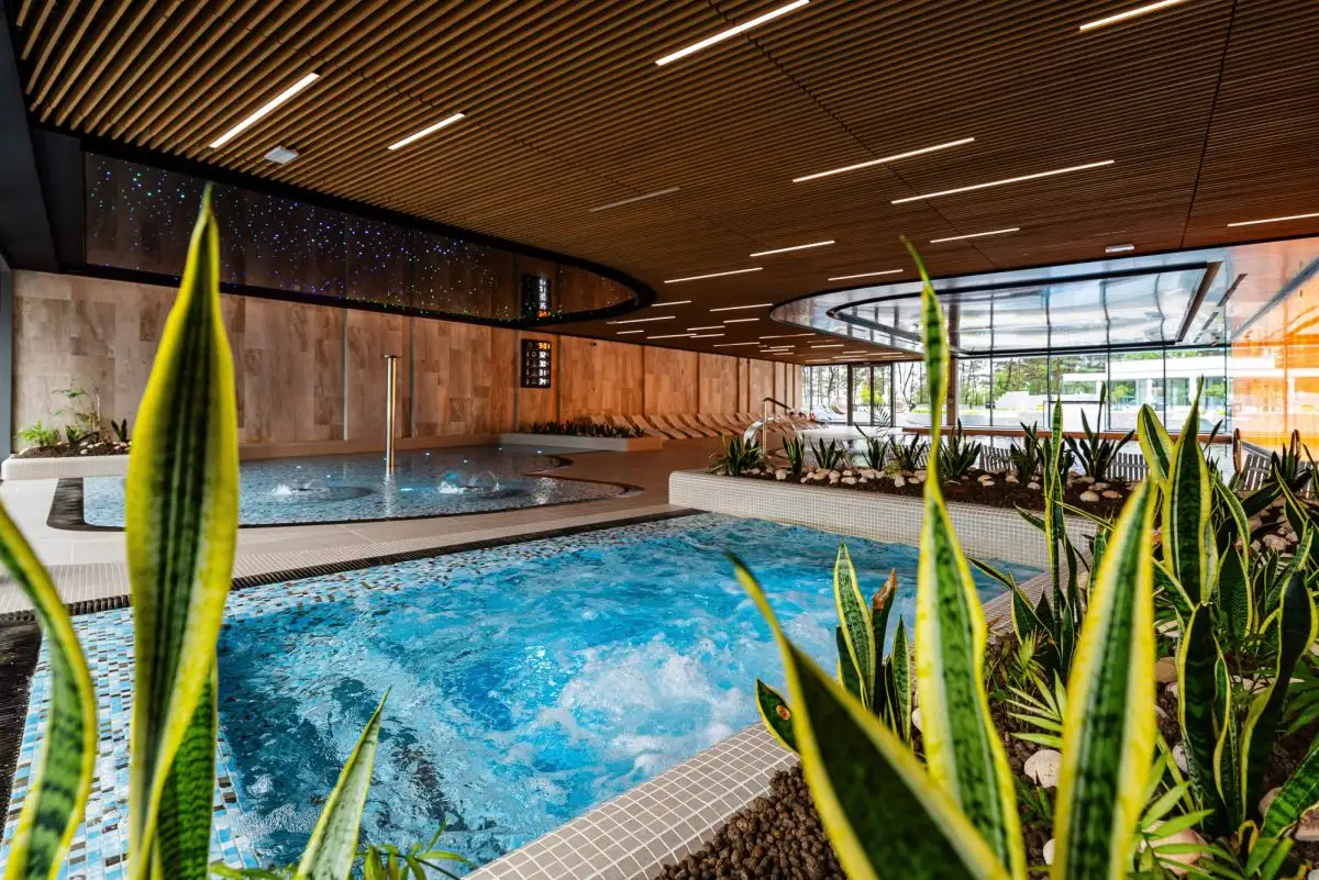 - W centralnej część kompleksu znajdzie się strefa SPA i saunarium oraz strefa basenowa wyposażona w leżaki, brodziki, jacuzzi zewnętrzne, wodotryski oraz strefę relaksu,