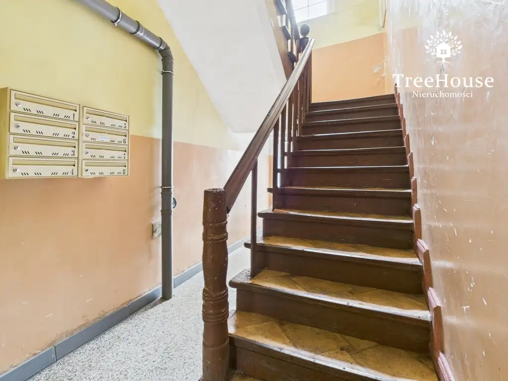 Lokal o powierzchni 31,38 m² usytuowany jest na pierwszym piętrze w dwupiętrowej kamienicy.