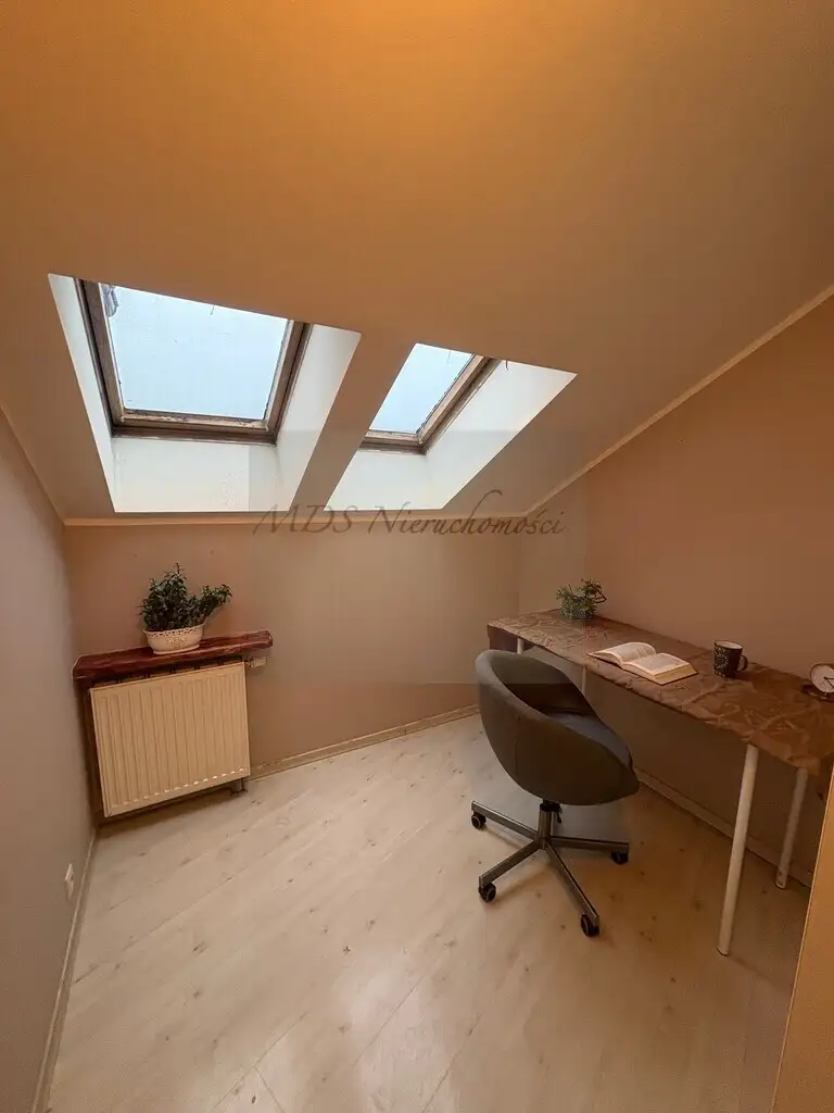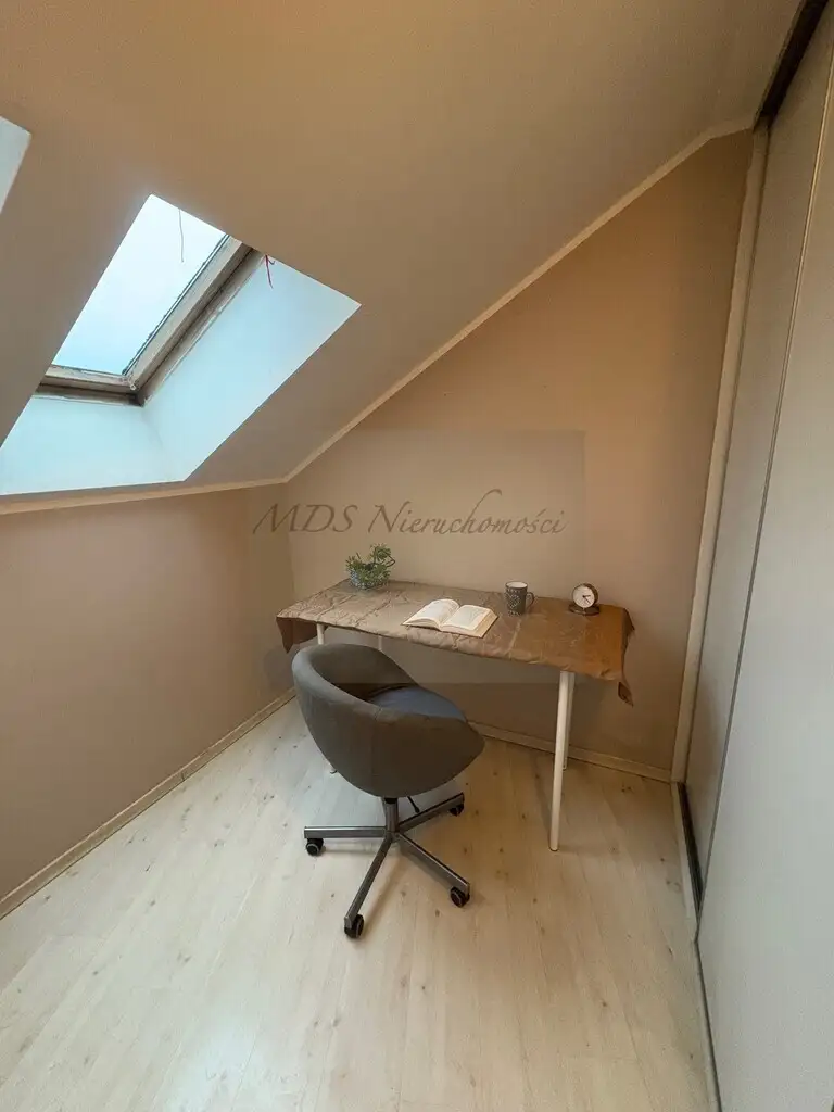 Druga sypialnia jest niewielka, z oknami połaciowymi skierowanymi na wschód, idealnie nadaje sie na gabinet, jest równie możliwość jej powiększenia.