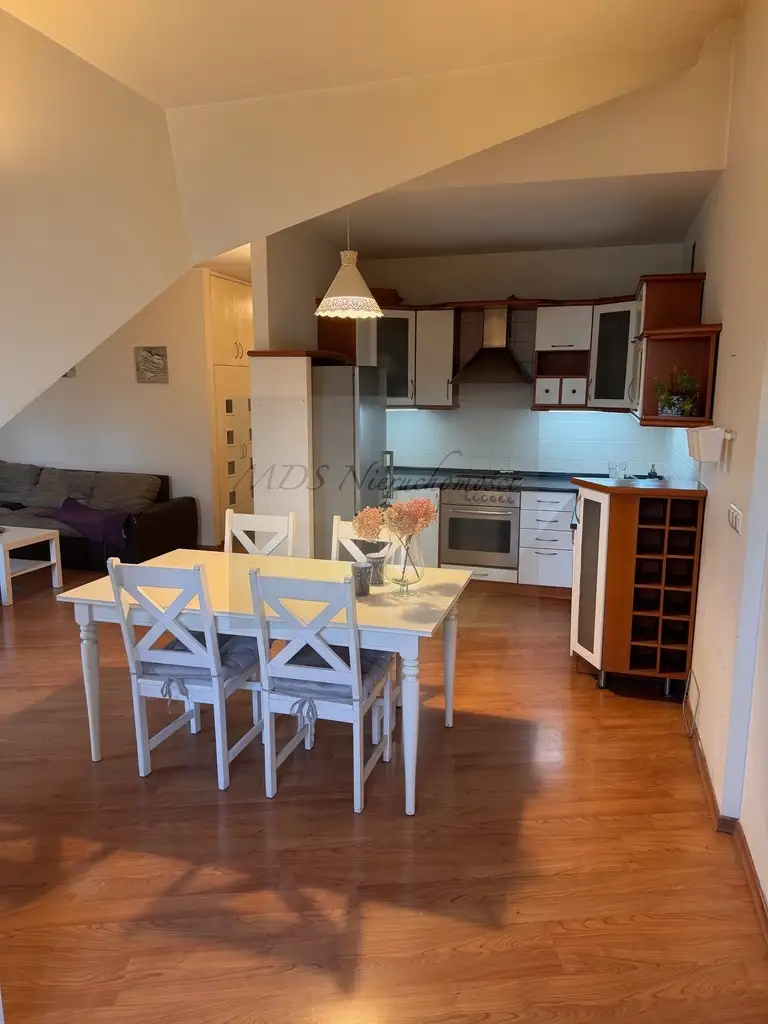 The height of the apartment is over 300 cm, with large sloping ceilings giving it a unique look.