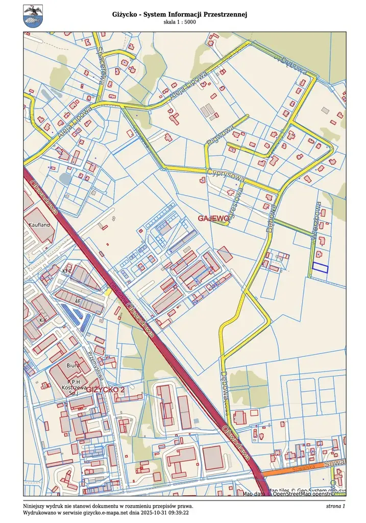 1) 227/4 o powierzchni 0,0771 ha, położona w miejscowości Gajewo, obręb geodezyjny Gajewo, gmina Giżycko dla której Sąd Rejonowy w Giżycku prowadzi księgę wieczystą OL1G/00016906/1. Wg ewidencji Gruntów i Budynków Starostwa Powiatowego w Giżycku działka oznaczona jest symbolem: RIVb – grunty orne.