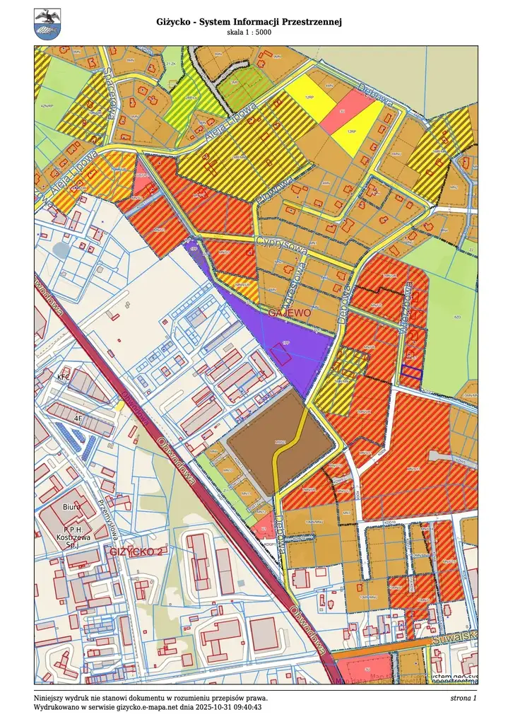Nieruchomość jest objęta miejscowym planem zagospodarowania przestrzennego dla części obrębu geodezyjnego Gajewo po wschodniej stronie ul. Węgorzewskiej, gmina Giżycko zatwierdzonym Uchwałą Nr XLII/445/2021 z dnia 30 grudnia 2021 roku, ogłoszoną w Dzienniku Urzędowym Województwa Warmińsko – Mazurskiego, poz. 962 z dnia 01 marca 2022 roku. Zgodnie z powyższym planem przeznaczona jest pod teren zabudowy mieszkalnej jednorodzinnej z dopuszczeniem usług, oznaczony symbolem MN/U7.