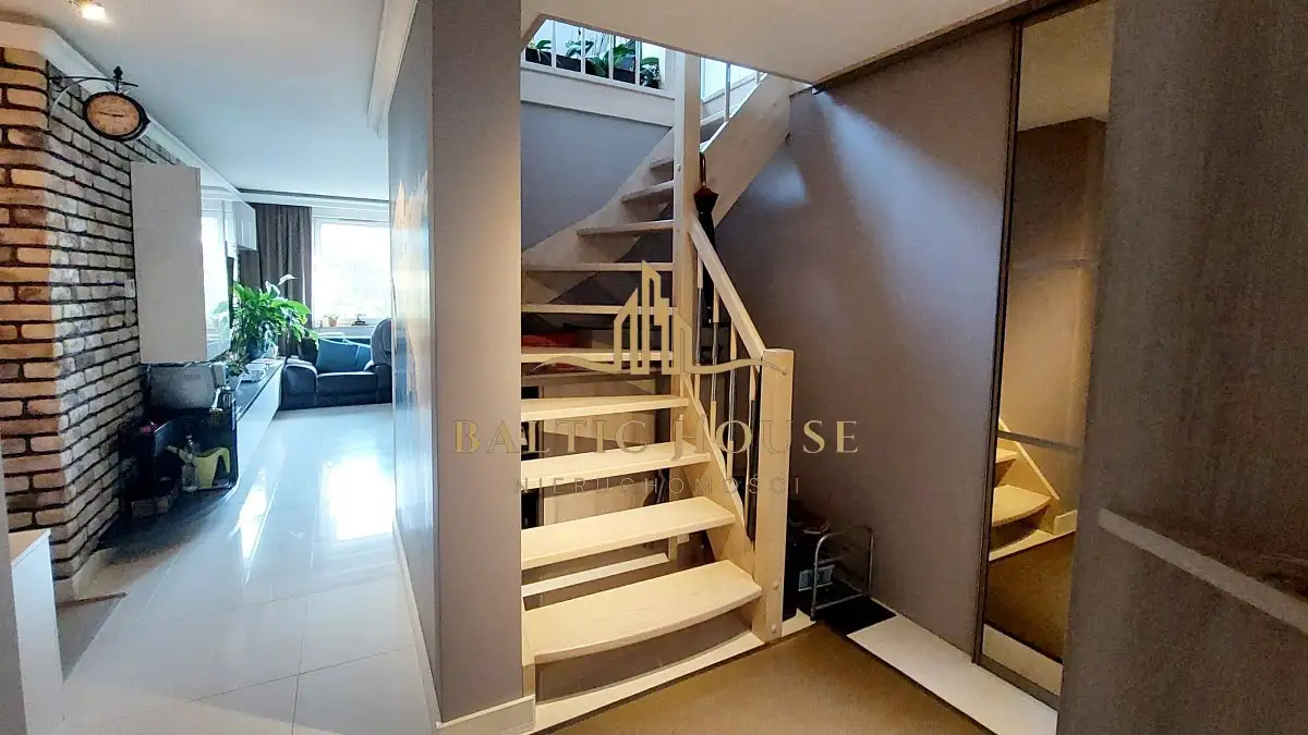 dwupoziomowe mieszkanie o powierzchni 100 m² położone na 2 piętrze w bloku na kameralnym osiedlu.