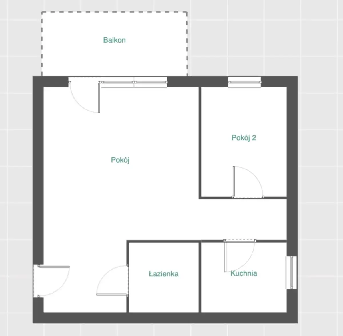 Ciekawa opcja: Układ mieszkania pozwala na łatwe powiększenie kuchni lub otwarcie jej na pokój, co pozwoli uzyskać nowoczesną, otwartą przestrzeń dzienną.