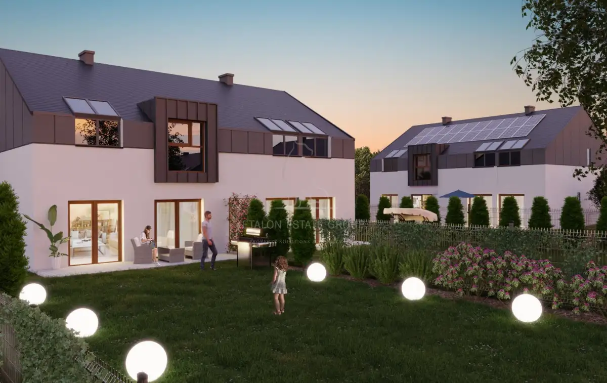 Nowoczesne rozwiązania technologiczne: Domy wyposażone są w najnowsze rozwiązania technologiczne, takie jak pompa ciepła czy ogrzewanie podłogowe, co gwarantuje oszczędność energii i przyjazne dla środowiska rozwiązania.