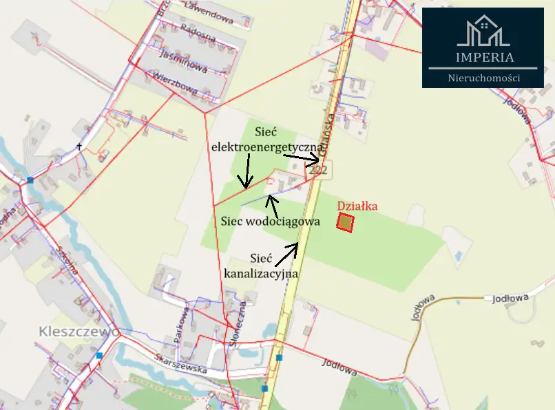 działkę budowlaną o powierzchni 1103 m², położoną w miejscowości Kleszczewo (gm. Trąbki Wielkie), w spokojnej części miejscowości, zaledwie kilkadziesiąt metrów od drogi głównej - ul. Gdańskiej. To