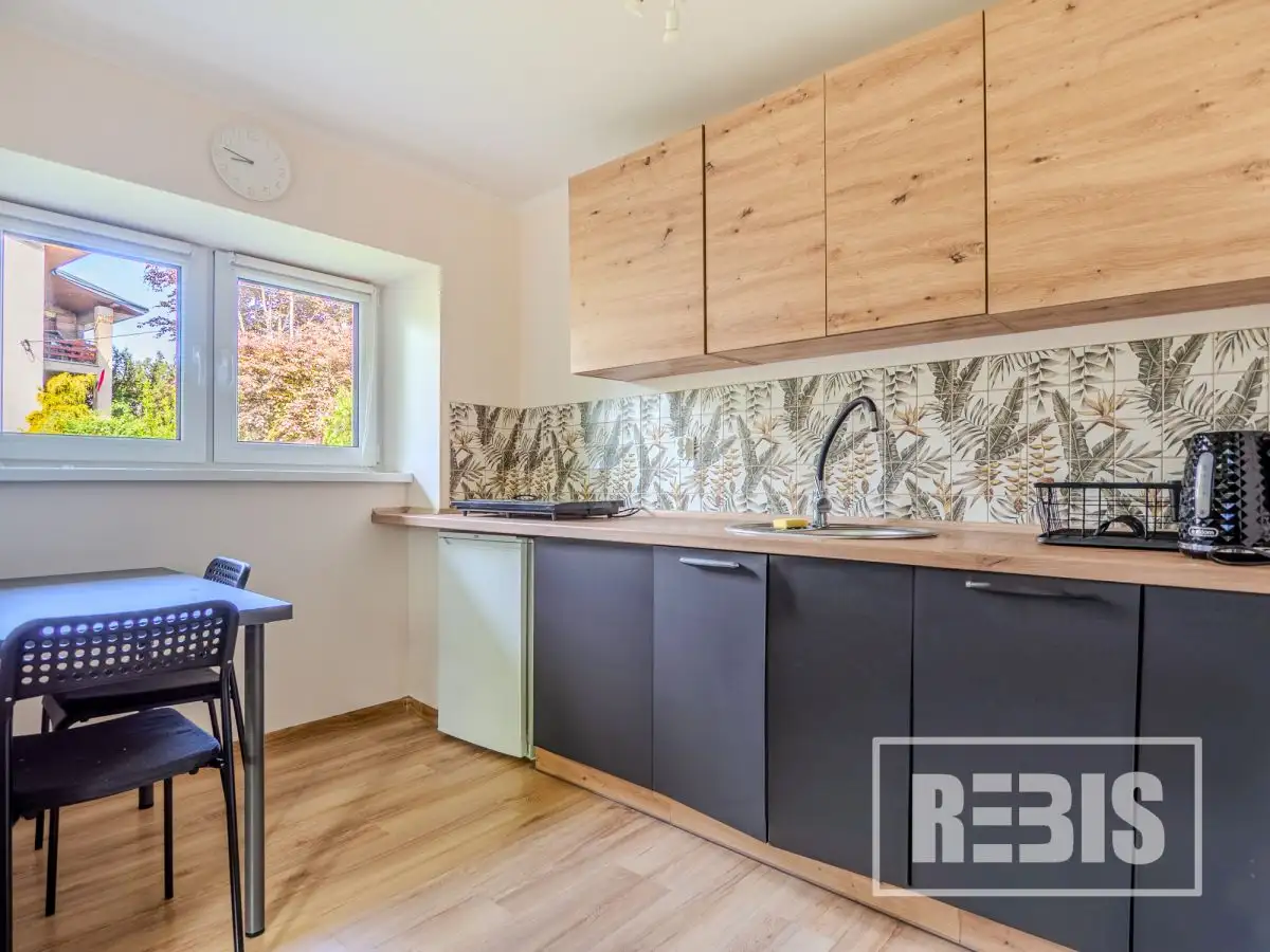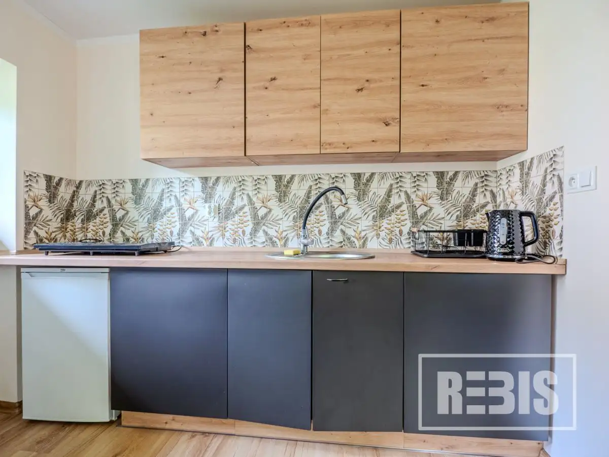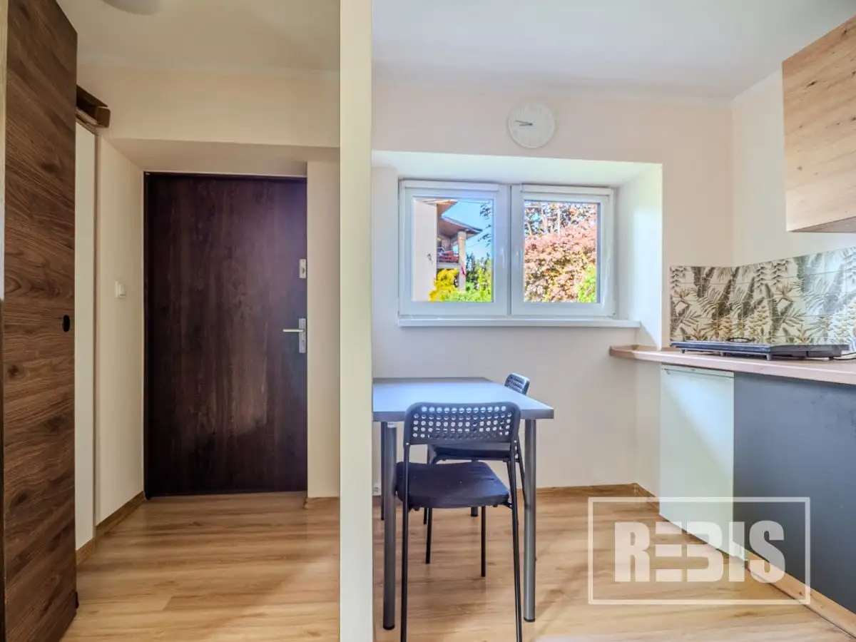 PROPERTY DESCRIPTIONThis cozy apartment consists of a modern bathroom with a shower, washing machine and water heater. The living room is equipped with a sofa bed, TV and capacious bookcases, while a large window provides access to natural light. The kitchenette includes a dining table and a cooktop, and the whole is decorated in light, natural colors. Aesthetic panels imitating wood were laid on the floors, which gives the interior a warm and modern character. The apartment is in an excellent location - the bus stop is a minute away, and the center of Krakow can be reached by train in just 15 minutes.