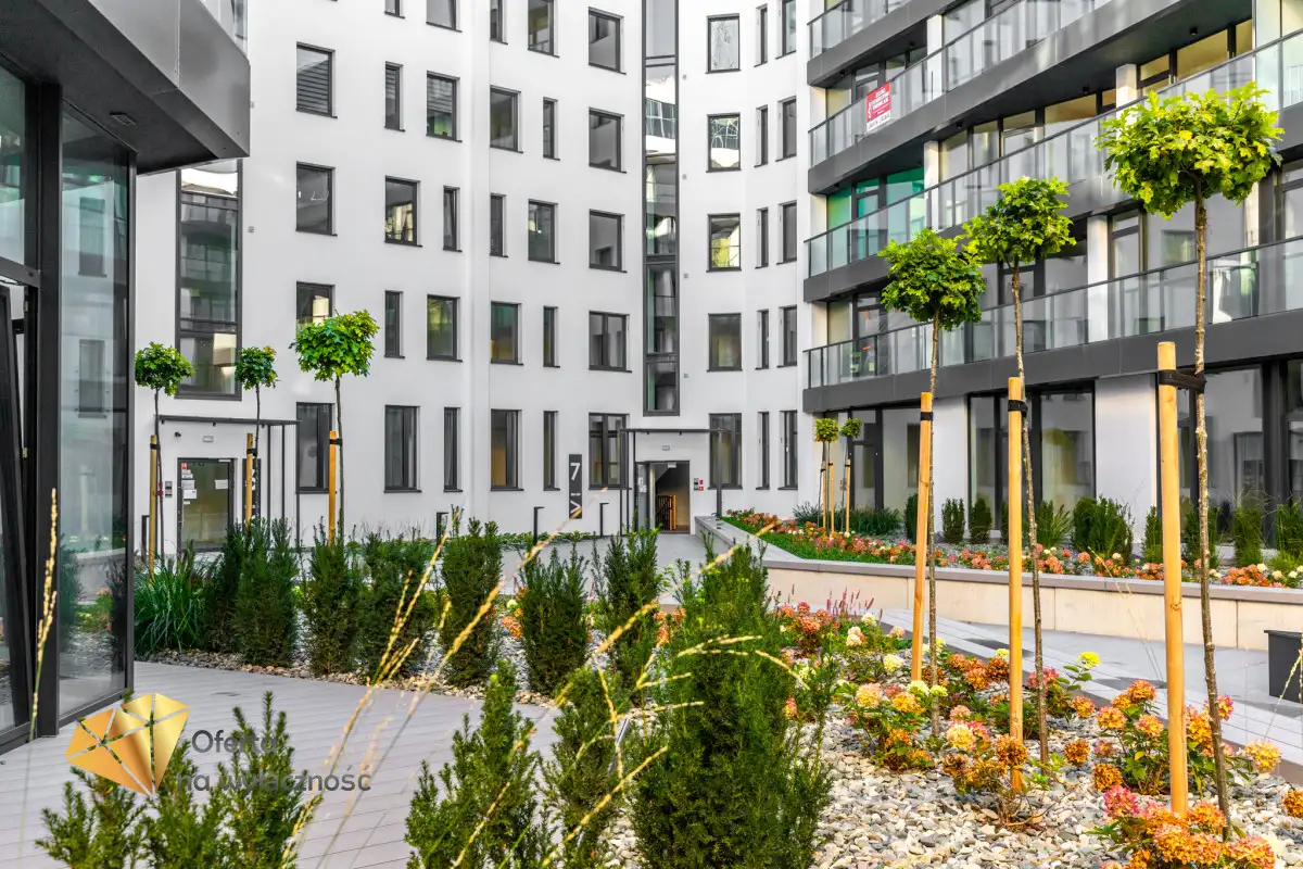Okna aluminiowe, wideomofon, wysoki standard wykończenia inwestycji, energooszczędne oświetlenie led, recepcja, patio z fontanną, ładowanie aut elektrycznych, światłowód, instalacja klimatyzacyjna w mieszkaniach,