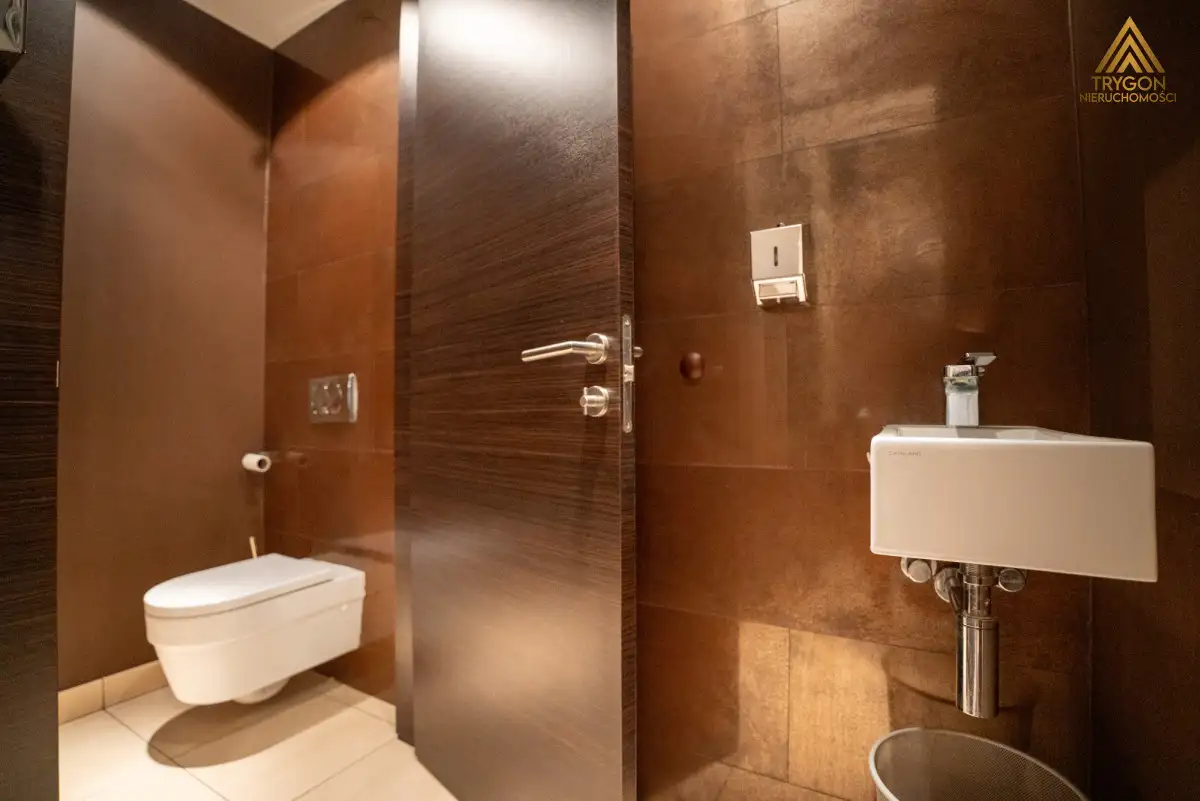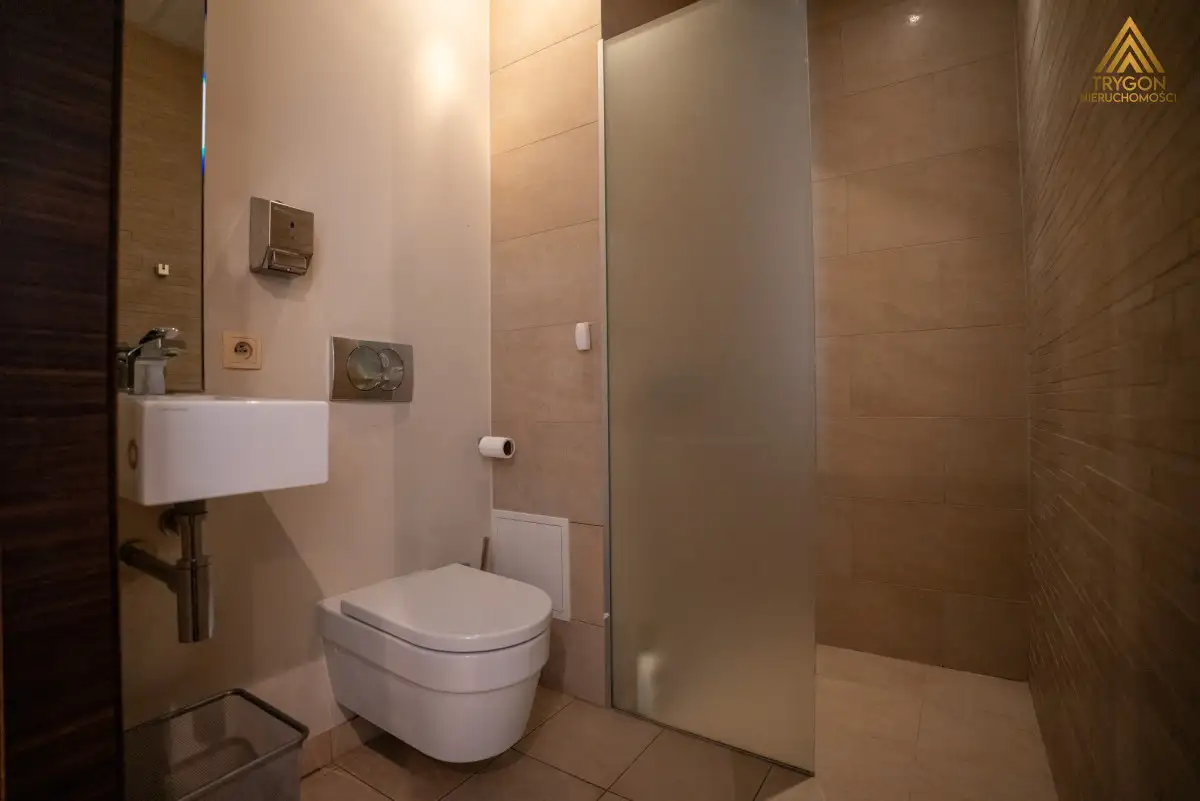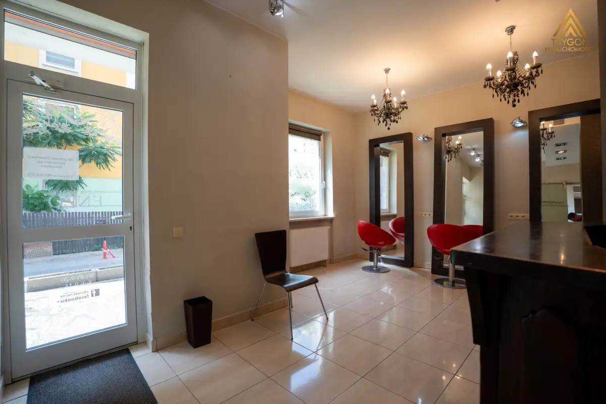 Lokal o powierzchni 53,80 m² usytuowany na parterze budynku z 2007 roku. Posiada dwa wejścia od strony frontu budynku oraz od klatki schodowej - lokal jest przygotowany dla osób niepełnosprawnych. Posiada osobną przestrzeń dla personelu, dwa osobne gabinety ( medycyna estetyczna, psycholog, fizjoterapia ) główną salę obsługi klienta wraz z recepcją oraz łazienkę z prysznicem, toaletą oraz osobną toaletę. Lokal wyposażony w rolety antywłamaniowe, rolety zaciemniające oraz monitoring.