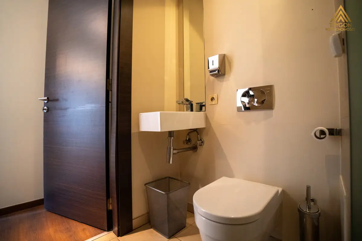 - dwia osobne pomieszczenia ( oddzielone szklanymi drzwiami, wyposażone w meble oraz umywalkę )