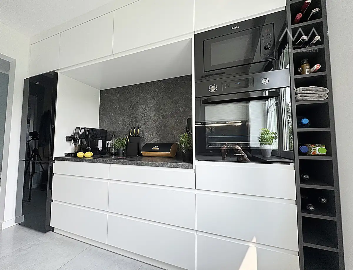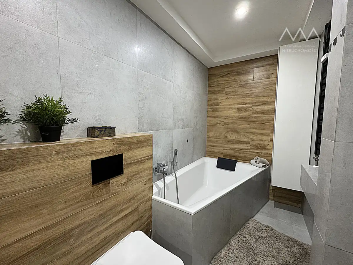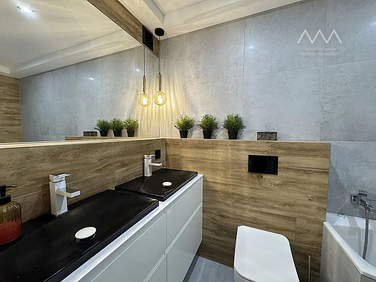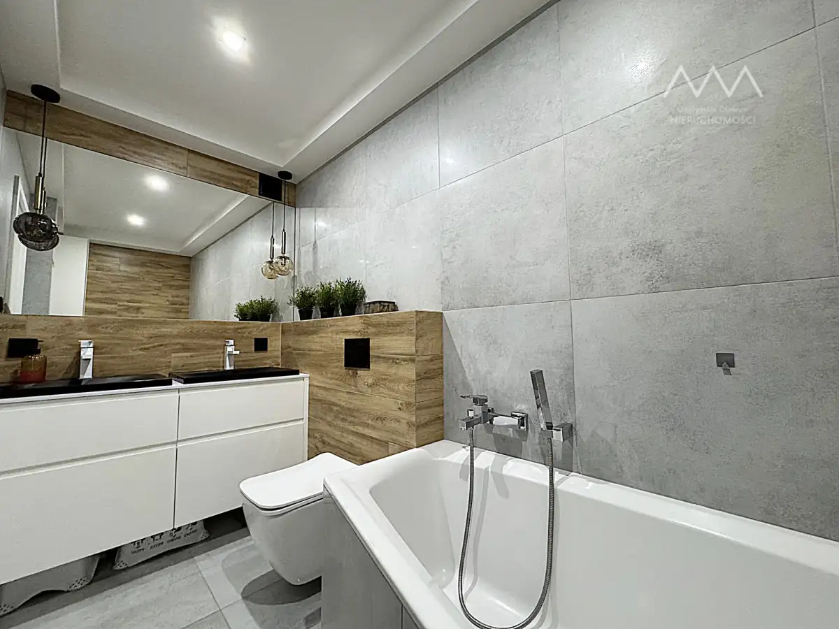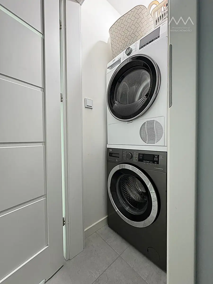 W pokojach oraz w przedpokoju pakowne i praktyczne szafy na wymiar. W cenie mieszkania wszystkie zabudowy stałe, meble widoczne na zdjęciach oraz sprzęt AGD, w który w pełni została wyposażona kuchnia oraz pralnia. Łazienka została przearanżowana z myślą o maksymalnej wygodzie — znajdziesz tu dwie umywalki, toaletę oraz wannę o dużych wymiarach, idealną do relaksu . Dla jeszcze większego komfortu codziennego korzystania, łazienka została wyposażona w ogrzewanie podłogowe, które zapewnia przyjemne ciepło pod stopami - szczególnie doceniane w chłodniejsze dni. W miejscu pierwotnej toalety wydzielono osobną, funkcjonalną przestrzeń gospodarczą z pralką, suszarką i miejscem na chemię oraz środki czystości.