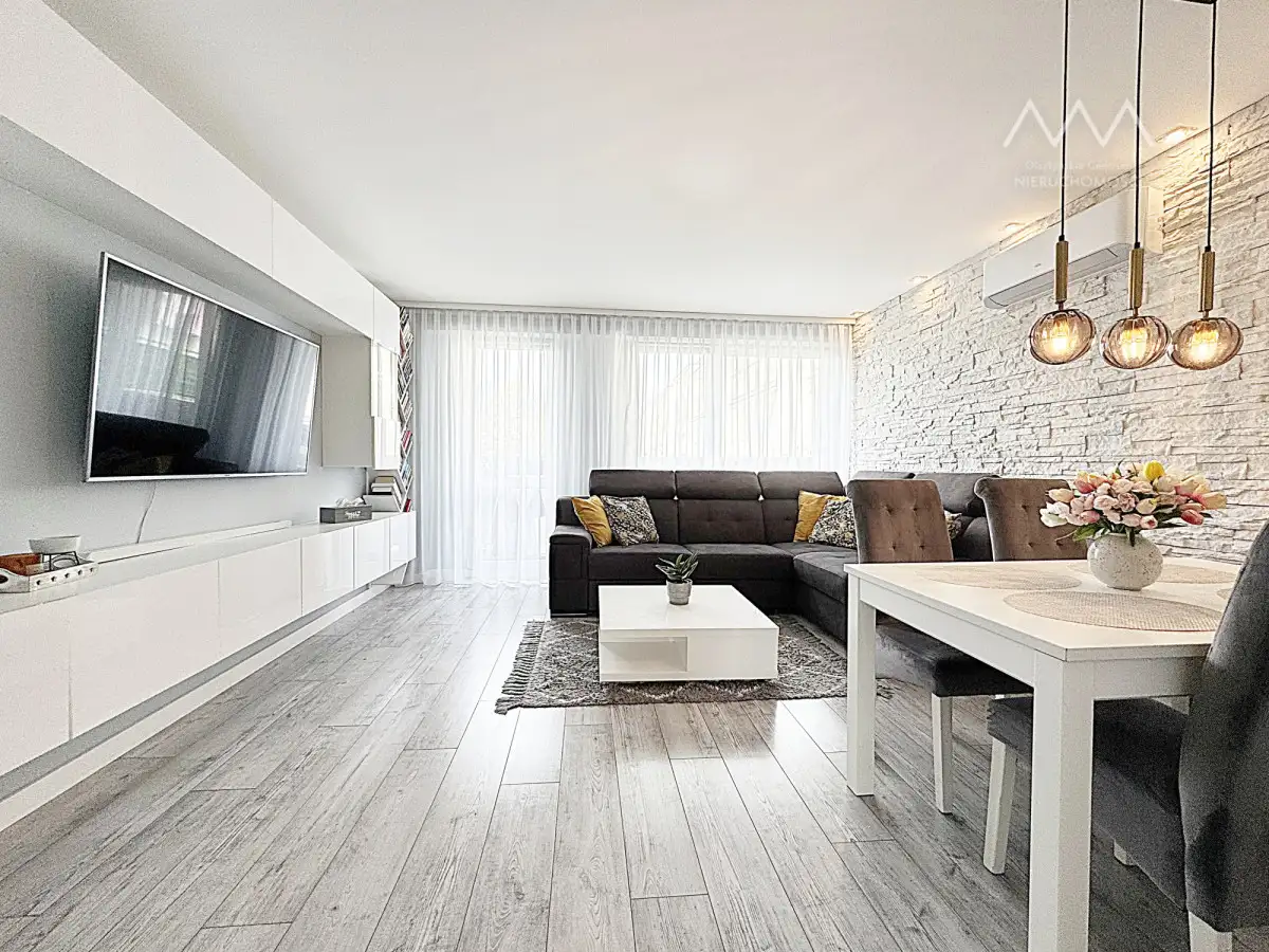 W mieszkaniu 5 lat temu został przeprowadzony generalny remont. Zmieniono pierwotny układ, wyburzono ścianę graniczącą pomiędzy dwoma pokojami i uzyskano większy pokój i dużą łazienkę Jest słoneczne, okna z salonu wychodzą na zachód..