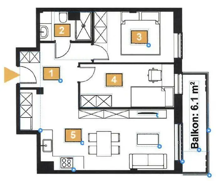 • układ: salon z aneksem kuchennym, dwa pokoje, łazienka, komunikacja