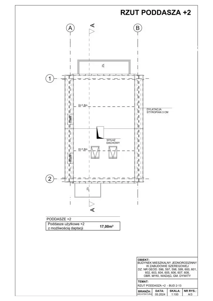 STRYCH ( PODDASZE +2) : dodatkowa pow. użytkowa ok. 17 m². Na strychu zamontowane okna połaciowe. Istnieje możliwość doprowadzenia strychu do stanu deweloperskiego za dodatkową opłatą.