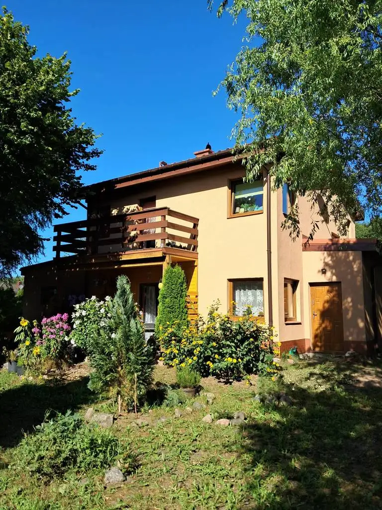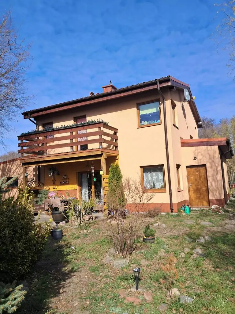 Sprzedam dom piętrowy, wolnostojacy, z garażem - 24 m², o pow. 124 m², z balkonem 7,5 m², gankiem 10 m² i tarasem 18 m², posadowiony na dzialce 733 m². Dom ma cztery pokoje, na parterze salon z kominkiem 14kw, o pow. 27 m², przedpokój z obszerną klatką schodową, wc z umywaleczka, kuchnia osobna z dwoma wejściami 11 m², wiatrołap, pom. gosp. 12 m², pietro - trzy sypialnie, łazienka 10 m², pawlacz, strych. Na ogrodzie z ładnymi nasadzeniami jest domek gospodarczy 9 m² i drewutnia na 20 m3. Dom posiada trzy systemy grzewcze - kominek 14 kw, piec półautomat na groszek oraz piec gazowy Co i Cwu.
