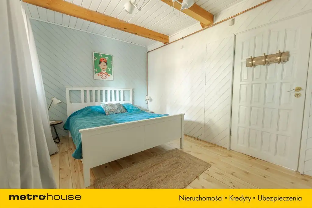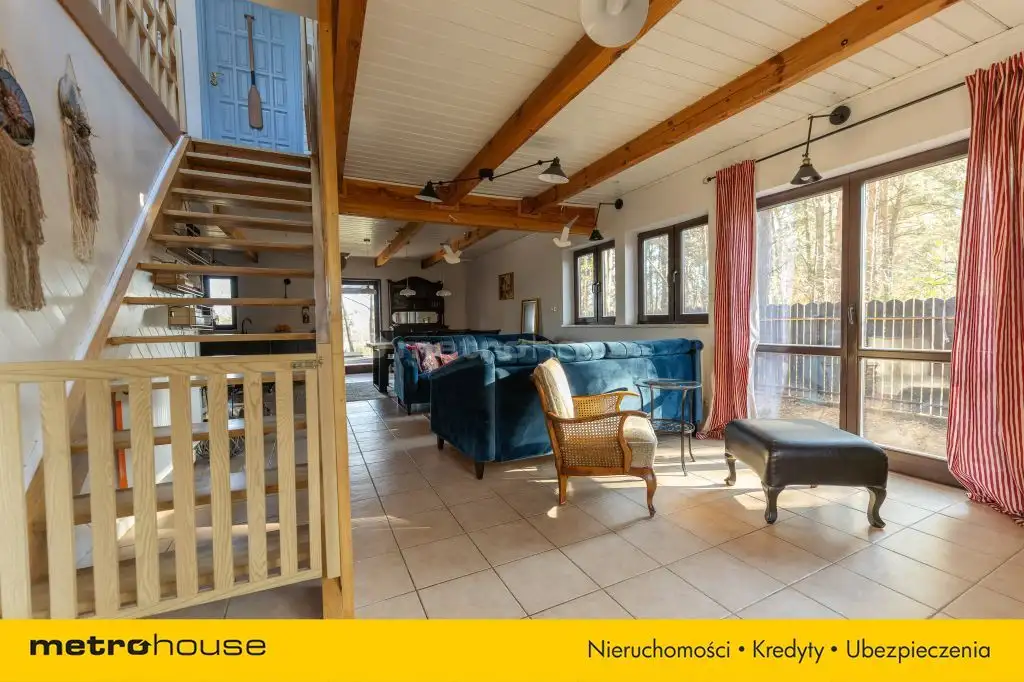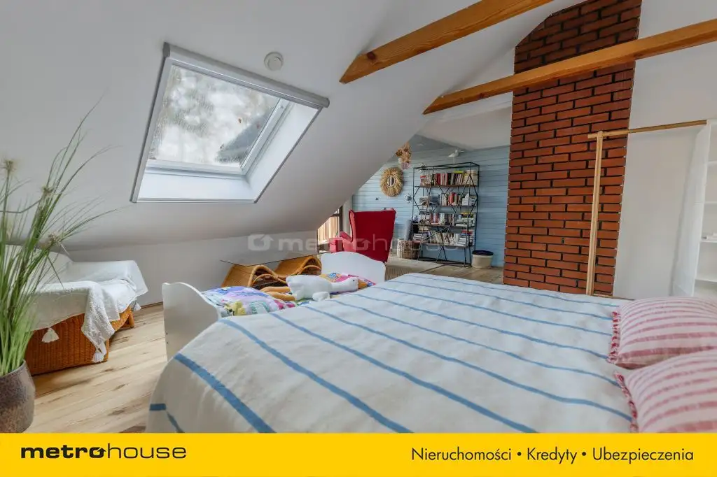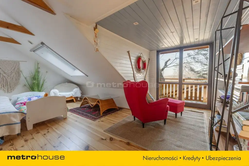 - Piętro: 3 sypialni, 1 łazienka, biblioteczka z balkonem z widokiem na rzekę. Poddasze jasne, z dużymi uchylnymi oknami.