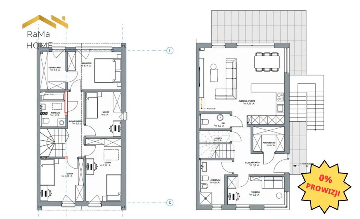 Piętro:- 4 sypialnie