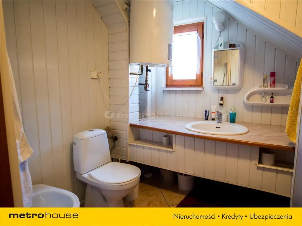 Dom posiada piętro i użytkowe poddasze. Posiada dwie łazienki. Drewniane dwuszybowe okna dodają uroku klimatycznej atmosferze wnętrz.