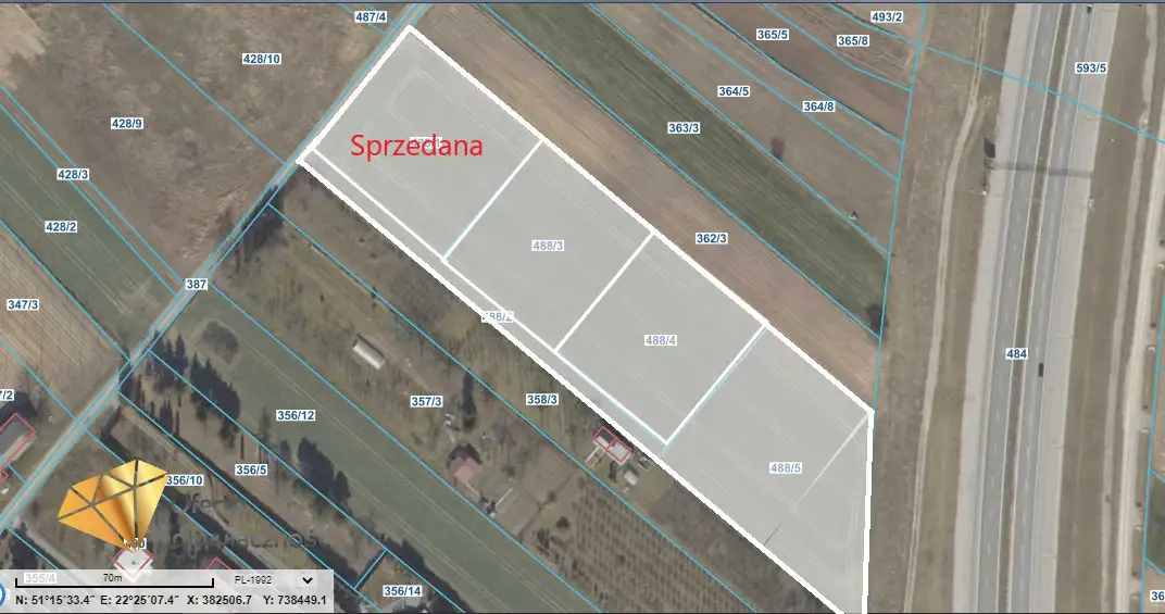 Nieruchomość gruntowa składa się z działek o numerach:488/3; 488/4; 488/5; droga dz. nr 488/2.