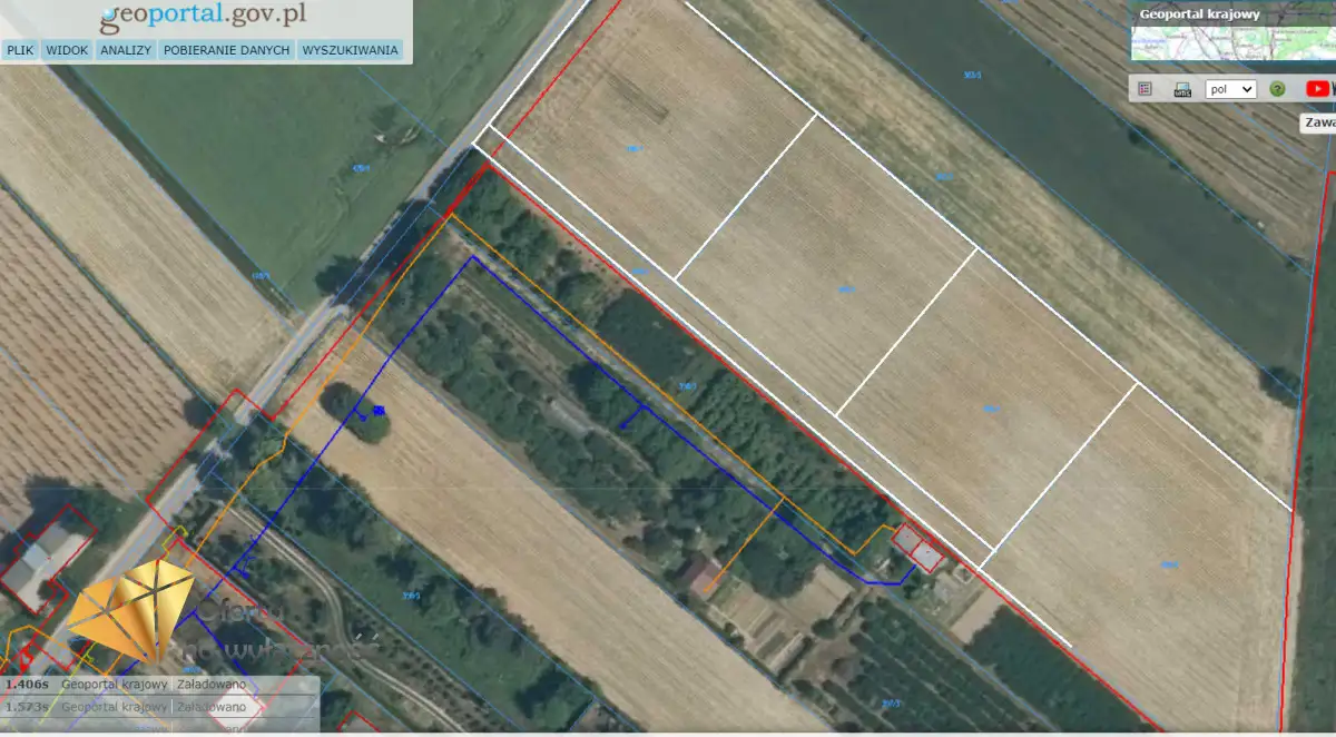 Trzy działki o łącznej pow. 10 587 m² w kształcie trapezu o wymiarach: szer. od frontu ok.63m; długość ok.197m.