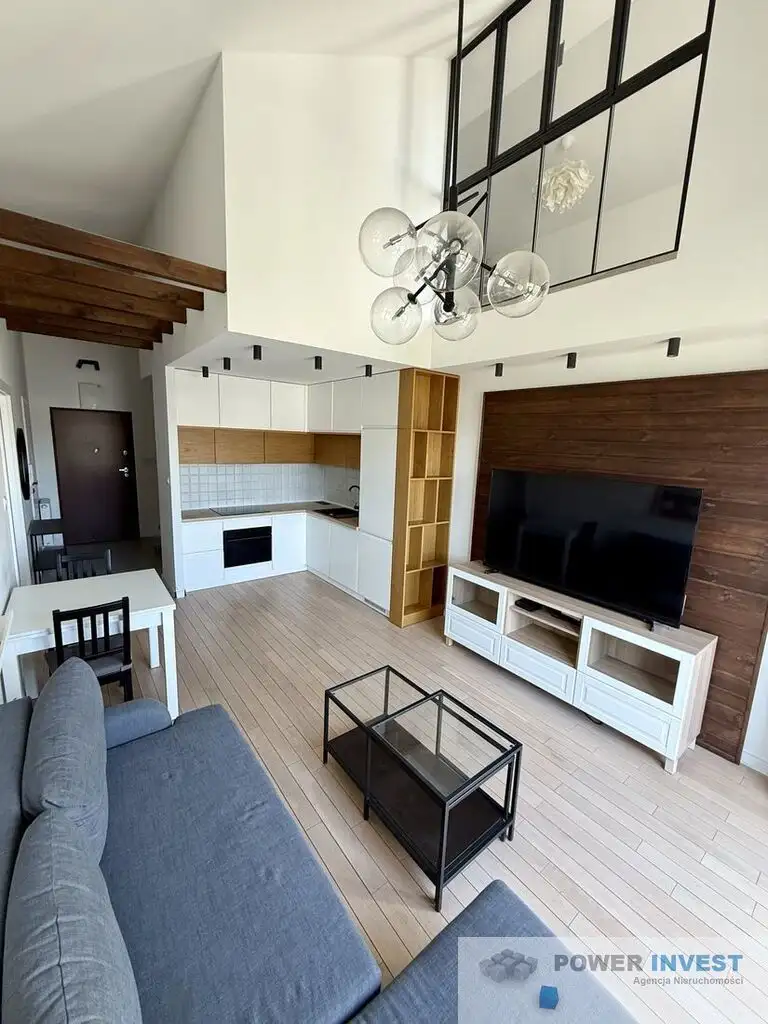 – przestronny salon z otwartą kuchnią oraz wyjściem na balkon