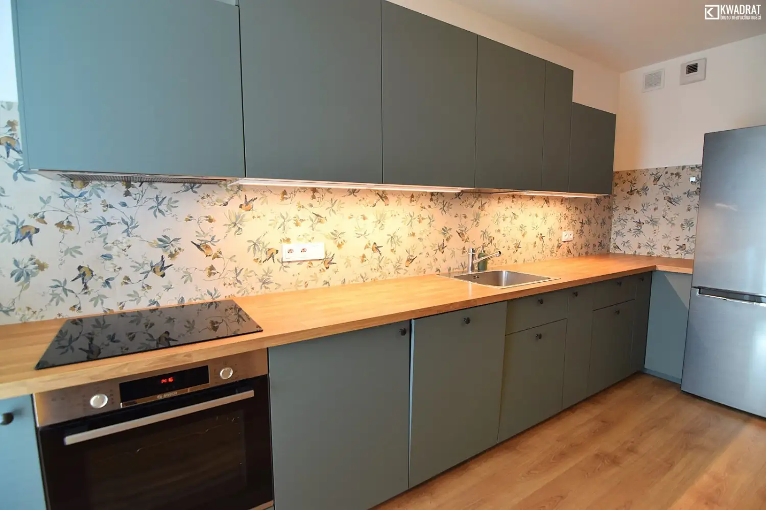 - W kuchni pełna zabudowa kuchenna, wyposażona w AGD firmy Bosh, Beko, LG szafki w systemie cichego domyku,