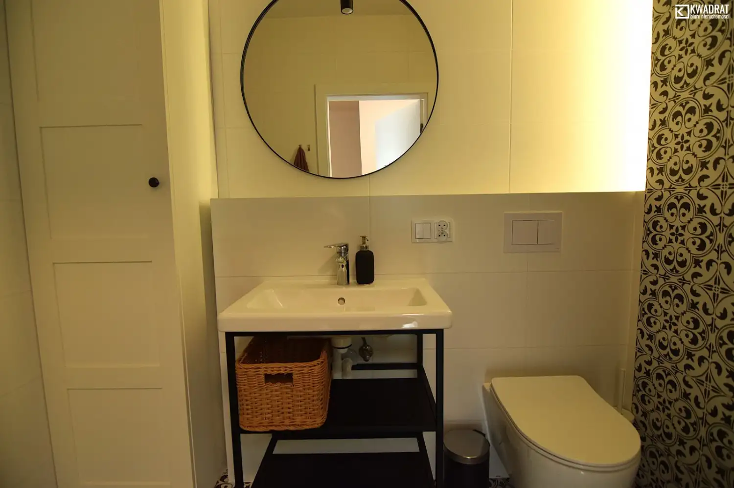 - W łazience mamy do dyspozycji prysznic z odpływem liniowym,
