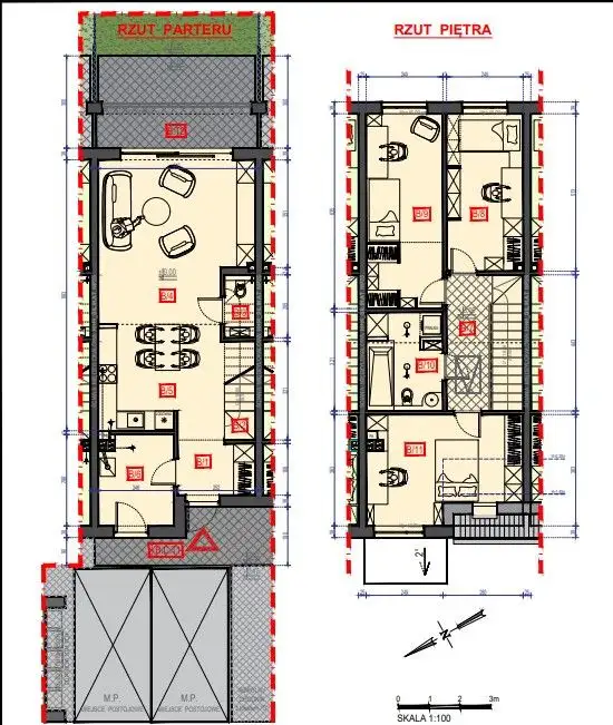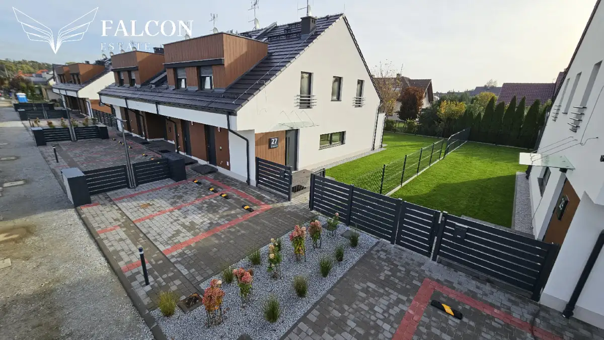 Każdy segment o powierzchni 116 mkw posiada własny ogródek wielkości 66,35m² oraz dwa miejsca postojowe miejsce postojowe na podjeździe