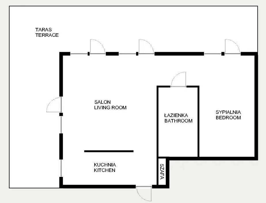 DESCRIPTION OF THE PROPERTYThe apartment is located on the top floor of a five-story residential block in the "NY Residence" investment. Air-conditioned property with a separate bedroom and a living room with a kitchenette with access to a viewing terrace, ideal for corporate employees or a couple. Great communication as well as numerous retail and service outlets make the property ideal for long-term rental. A huge terrace with an electrically retractable pergola creates an ideal place to admire sunsets, but also places such as the Tadeusz Kościuszko Mound or St. Mary's Church.