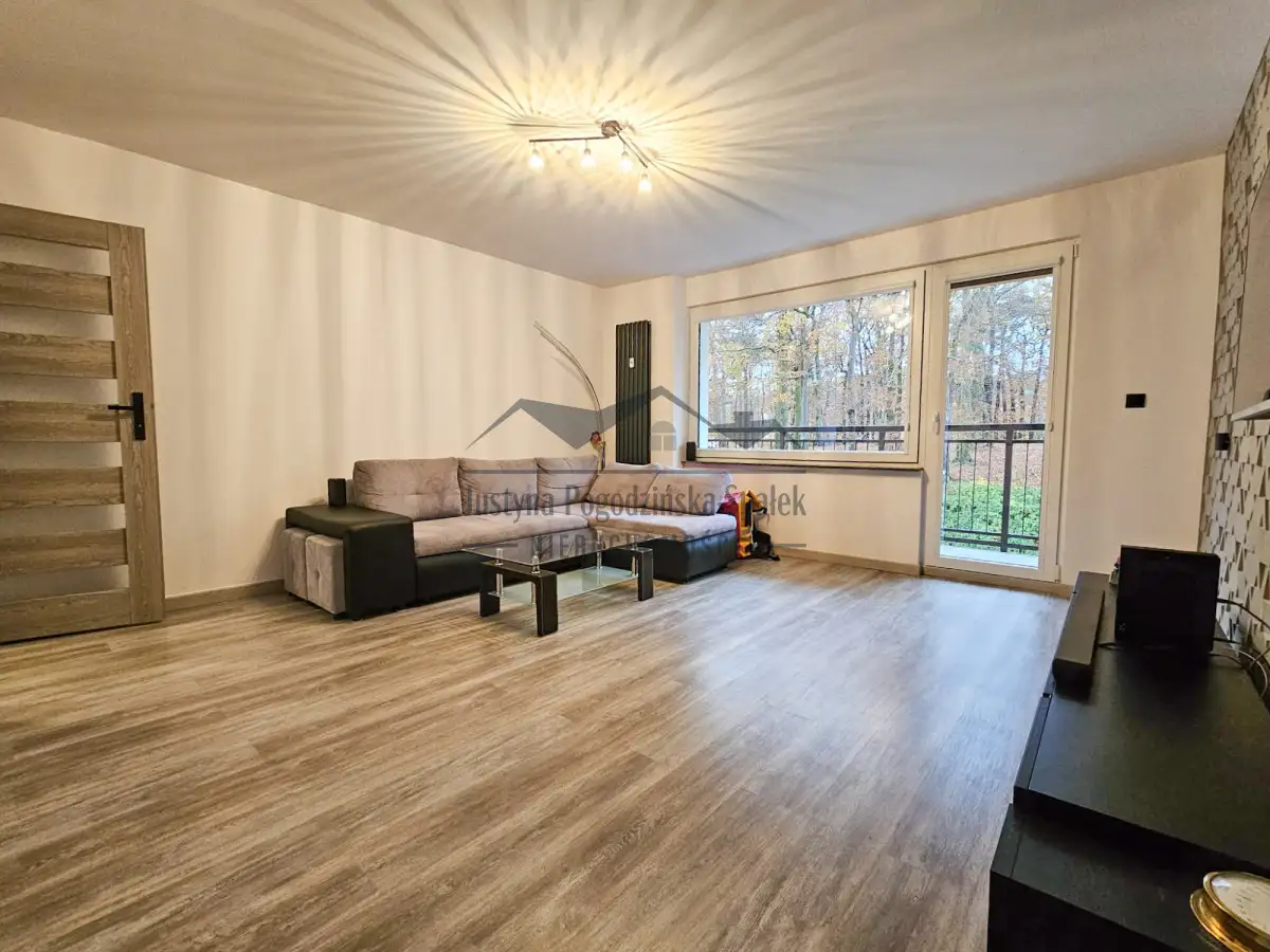 salonu z wyjściem na kameralny balkon od strony południowej (widok na las),