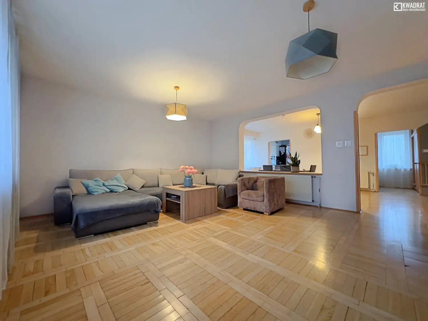 Układ pomieszczeń: 7 pokoi, 2 kuchnie oraz 2 łazienki, co zapewnia wygodę i funkcjonalność na co dzień.