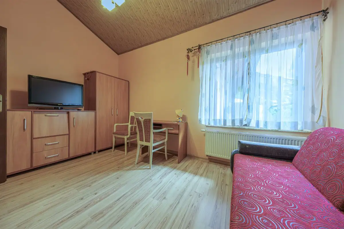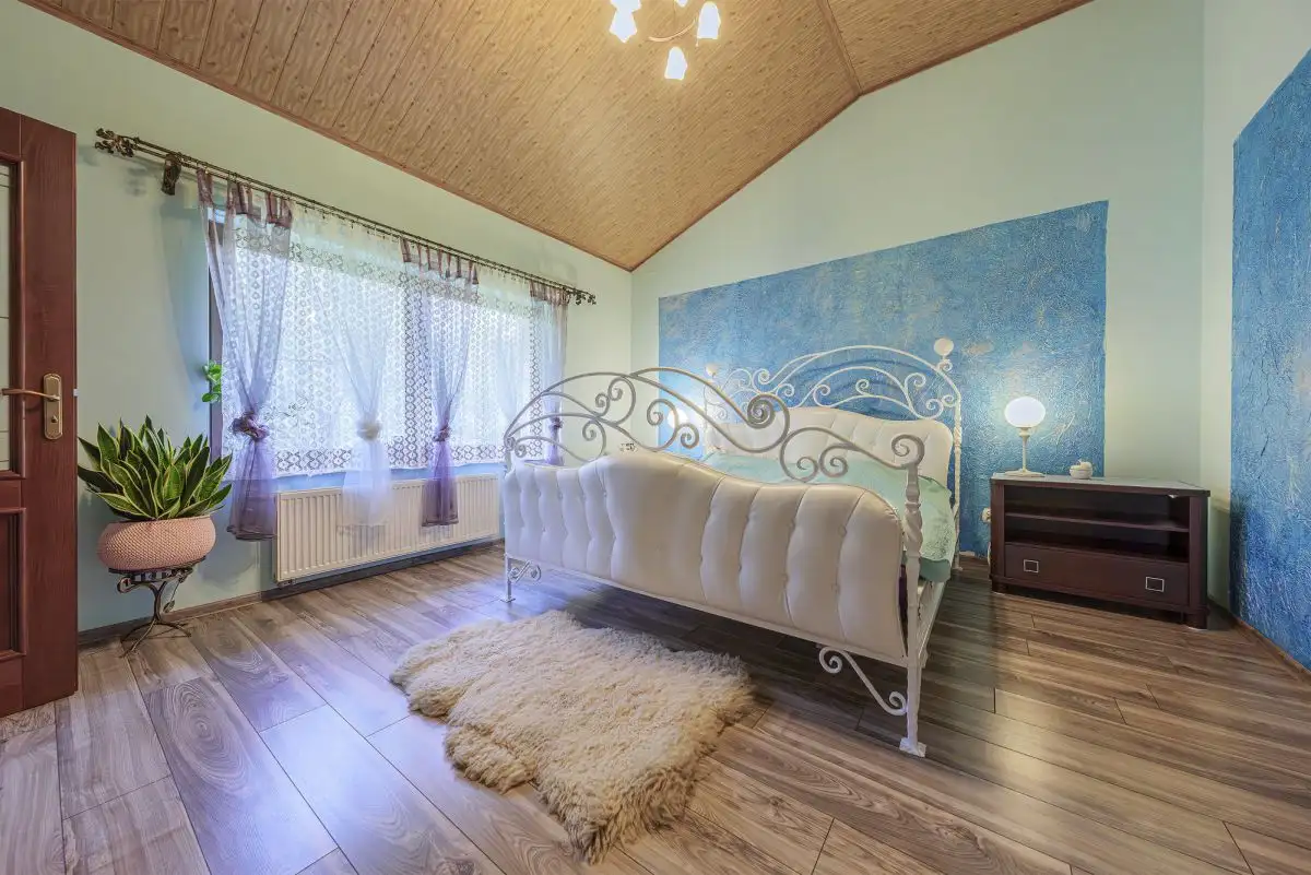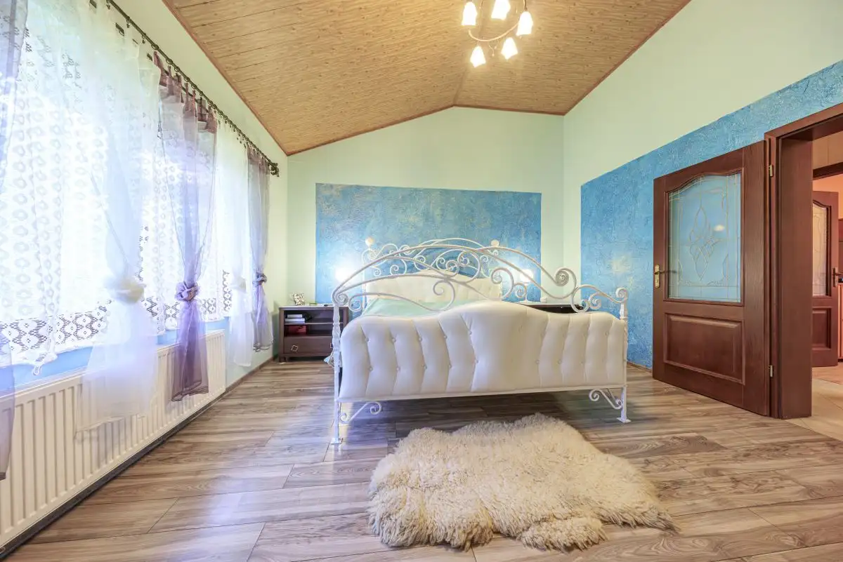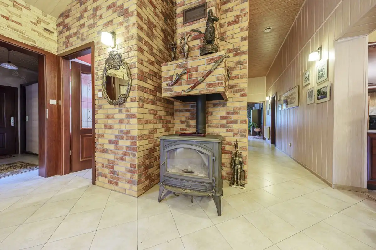 Dom posiada 3 sypialnie, bardzo duży salon z aneksem kuchennym, 2 łazienki, garderoba, przedpokój, korytarz kotłownię.