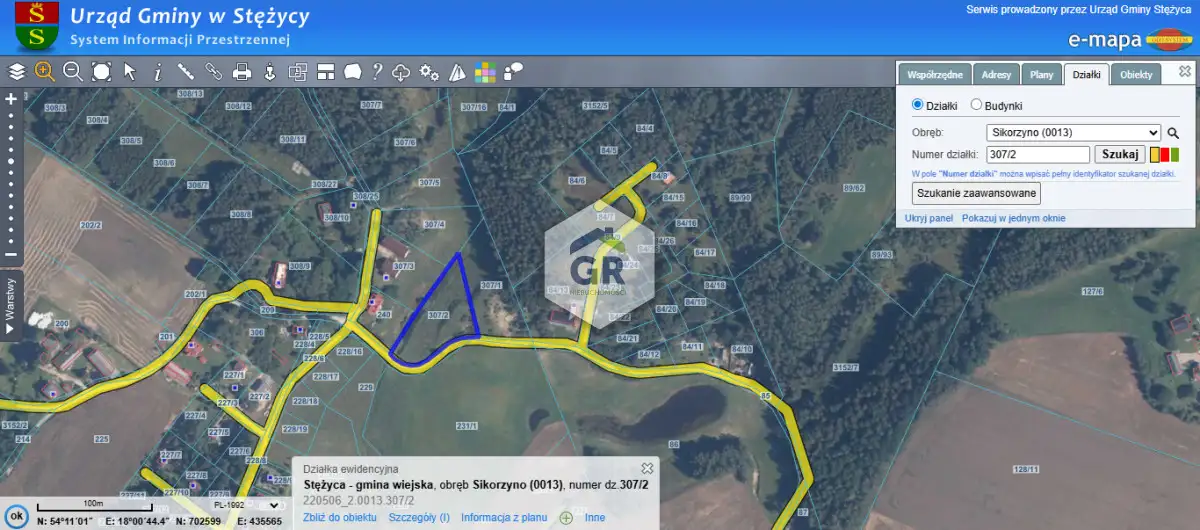 LOKALIZACJA:DZIAŁKA znajduje się w miejscowości Sikorzyno Stara Sikorska Huta, gmina Stężyca.