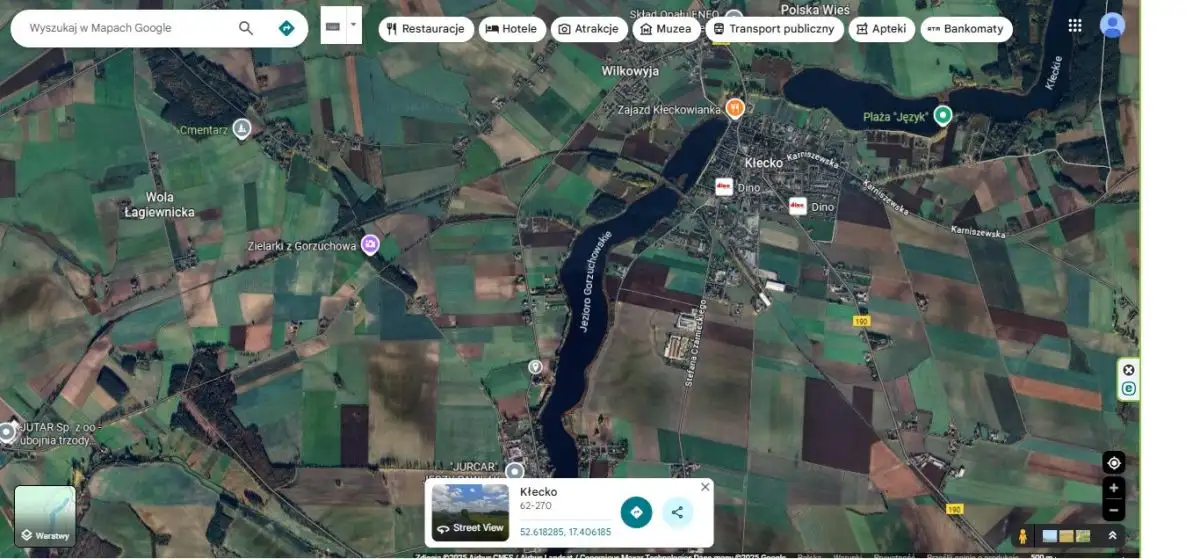 po drugiej stronie jeziora znajduje się miejscowość Kłecko.