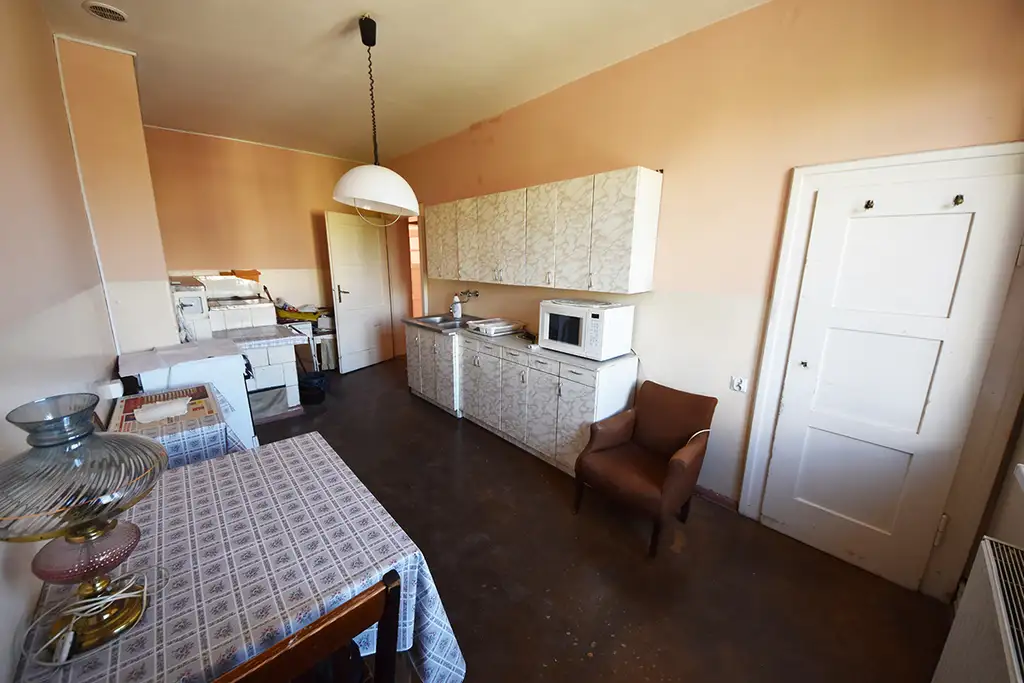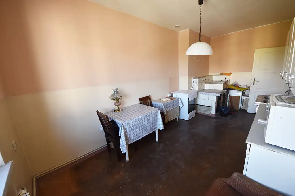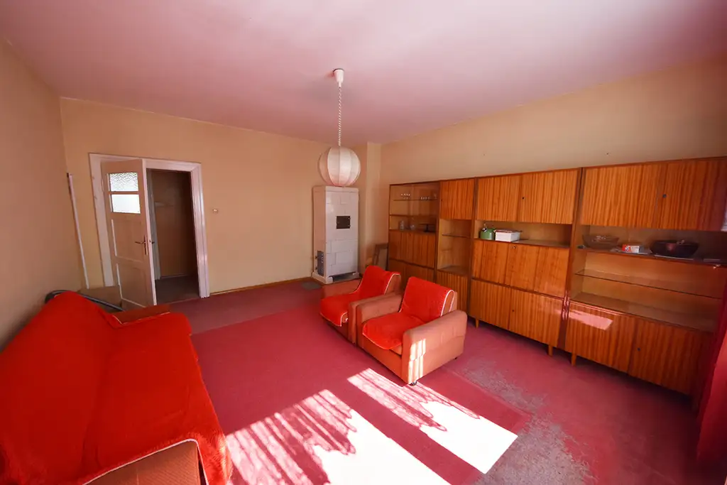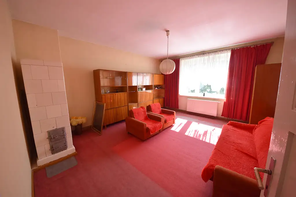pokoje z podłogą z deski, ściany i sufity otynkowane,
